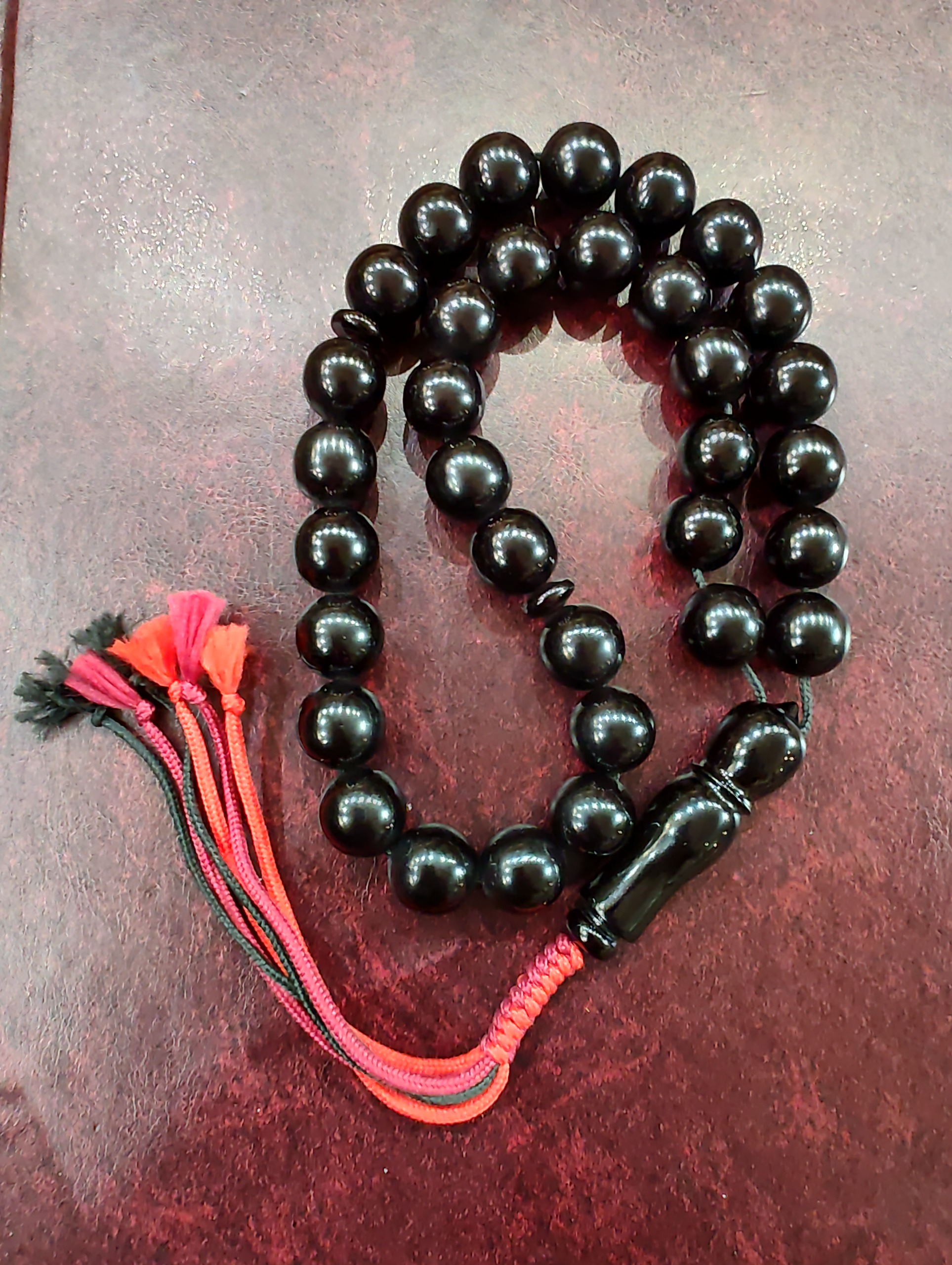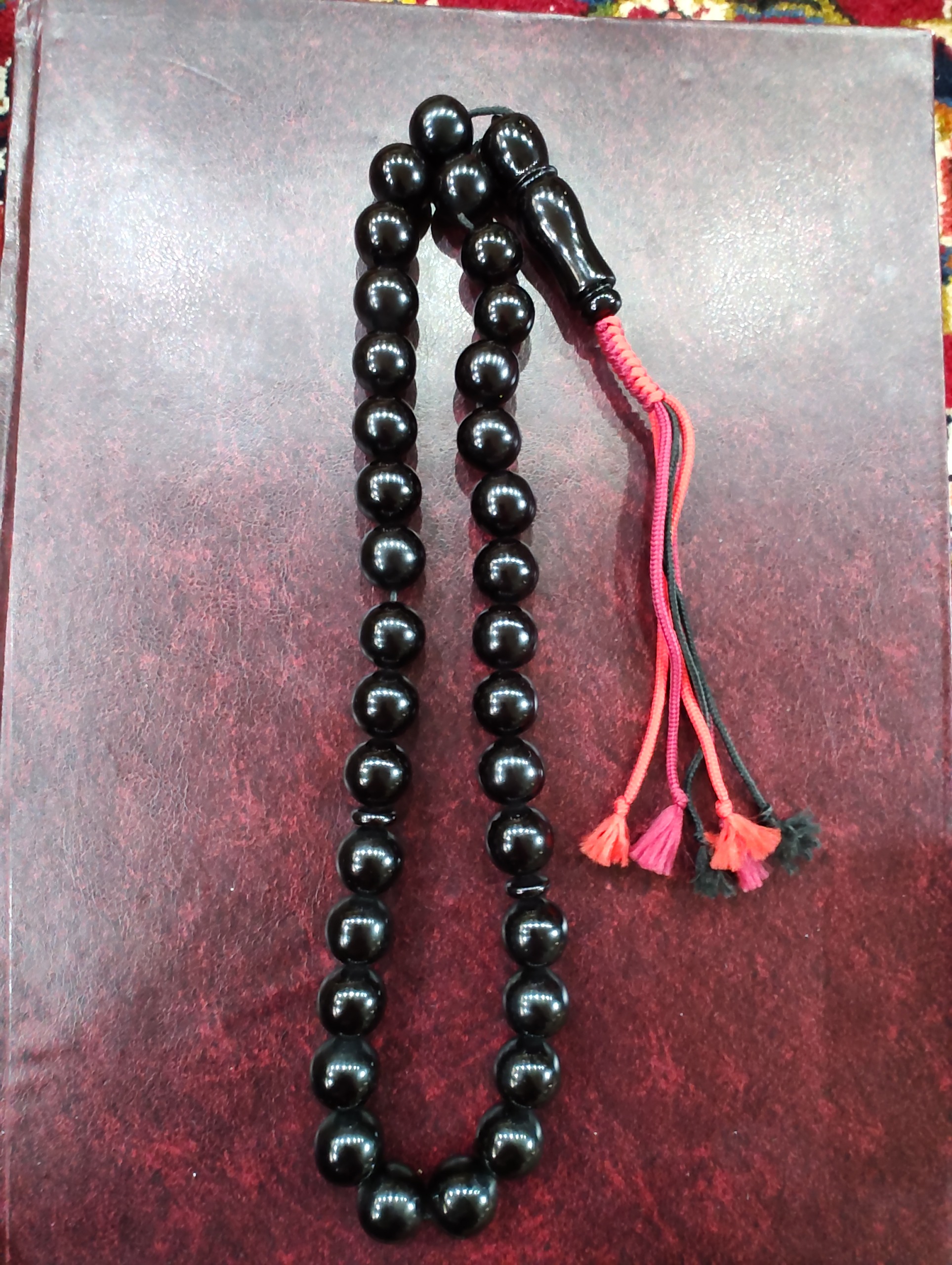 تسبیح سندلوس 33 عددی درشت دو پوست( مشکی،زرشکی) بسیار زیبا به وزن 110 گرم