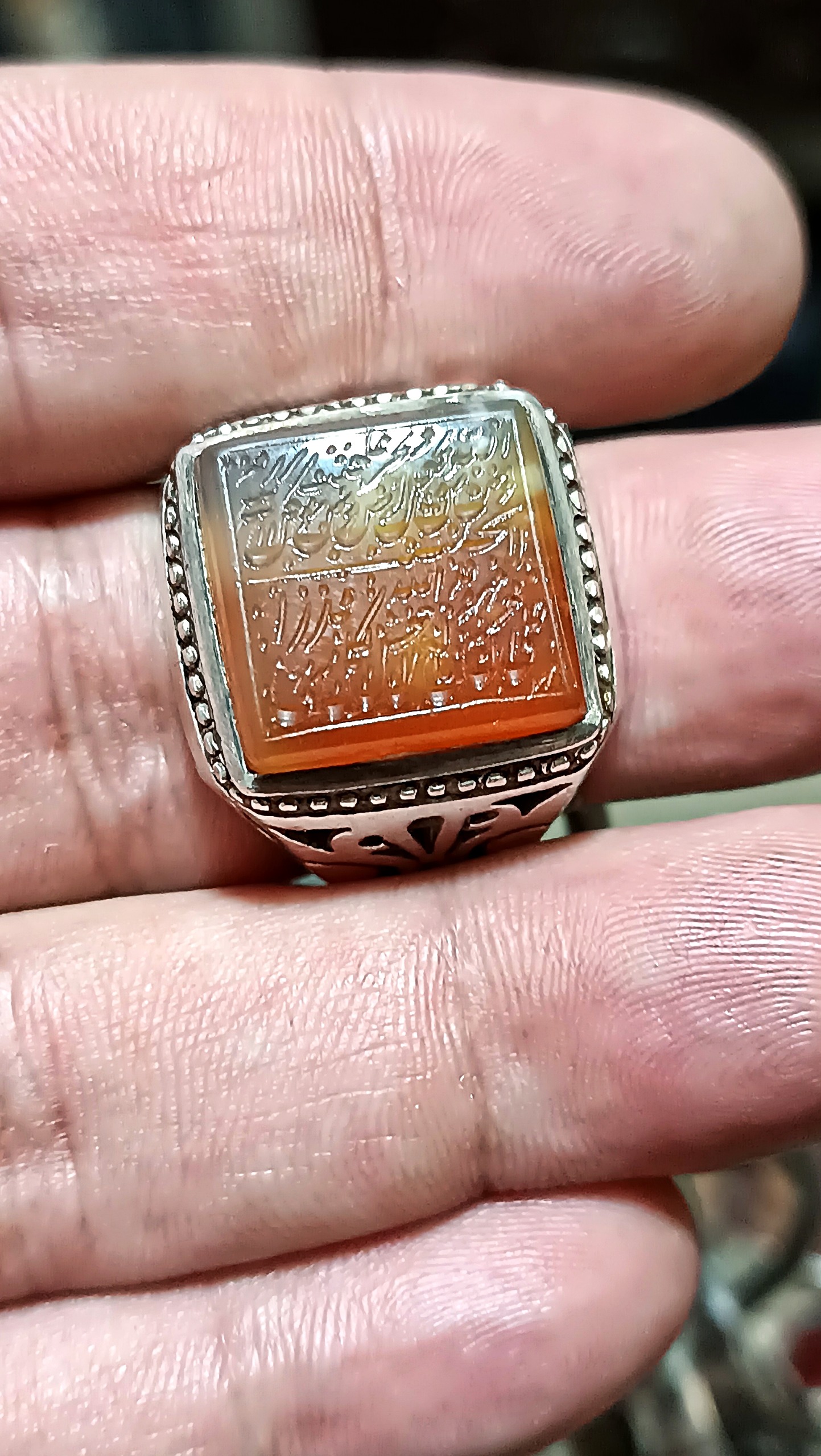 مهردار و عدد 950 نوشته اره کاری دست استاد دانشور نگین عقیق وزن بالای 28 گرم