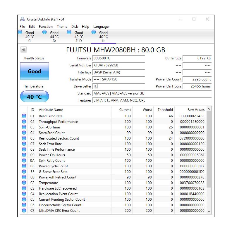 هارد لپ تاپی ساتا 80 گیگ Fujitsu (سلامت 100)