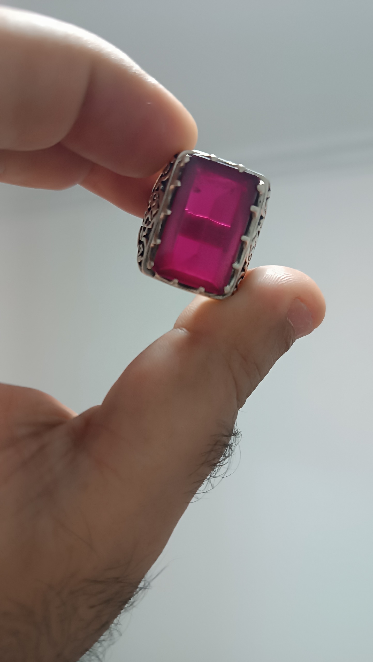 وزن بالای 21 گرم نگین یاقوت سنتاتیک رکاب نقره کم بار