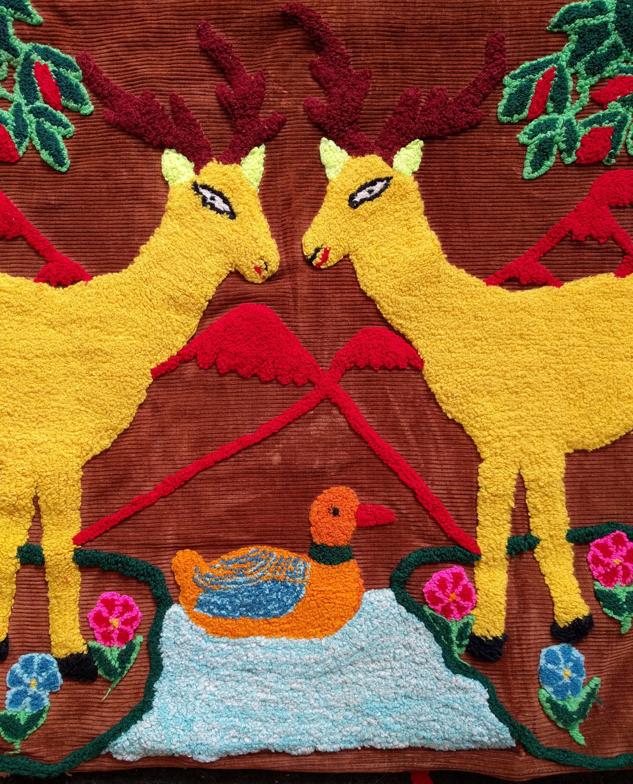 روپشتی مخمل قدیمی آنتیک با گلدوزی زیبای برجسته