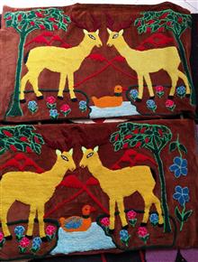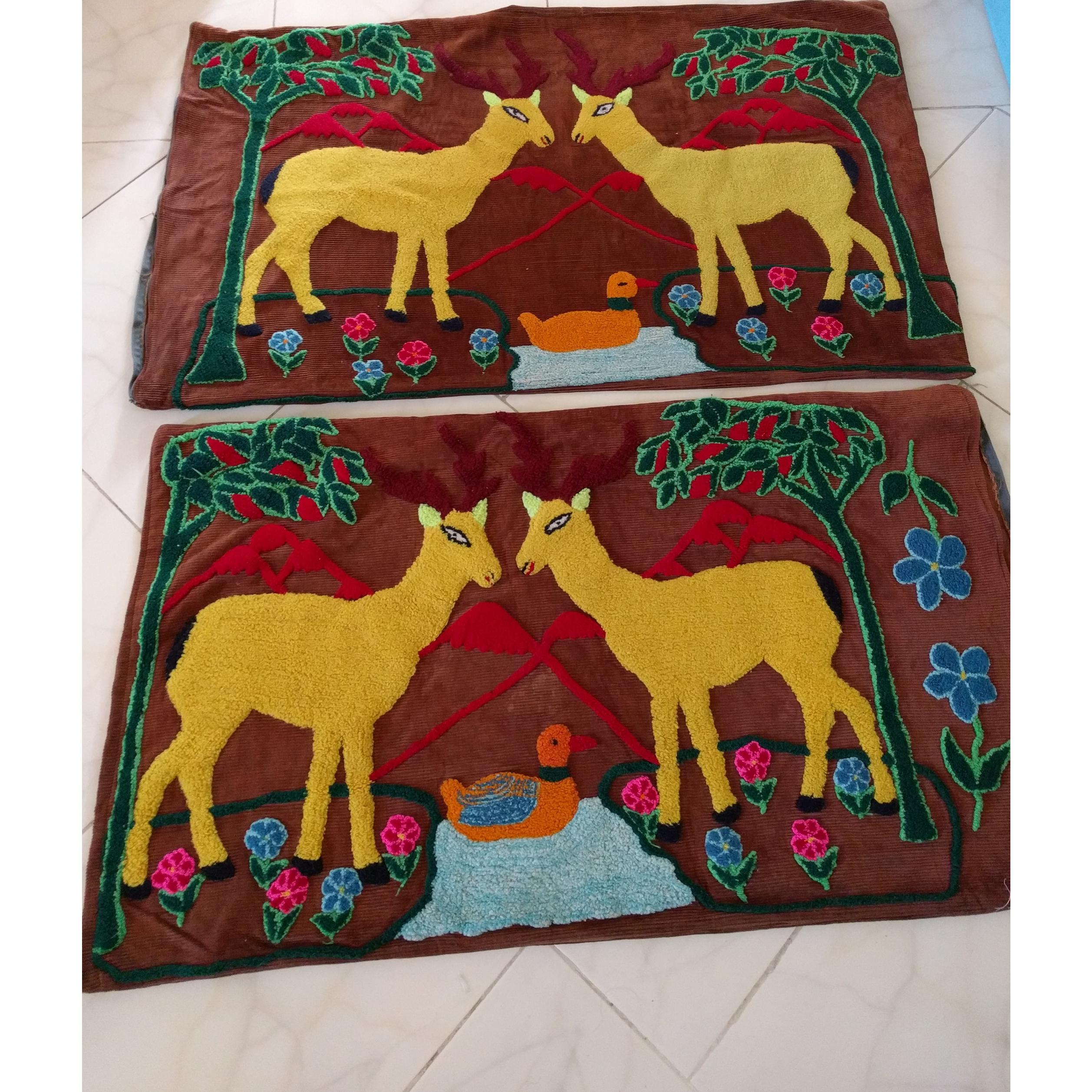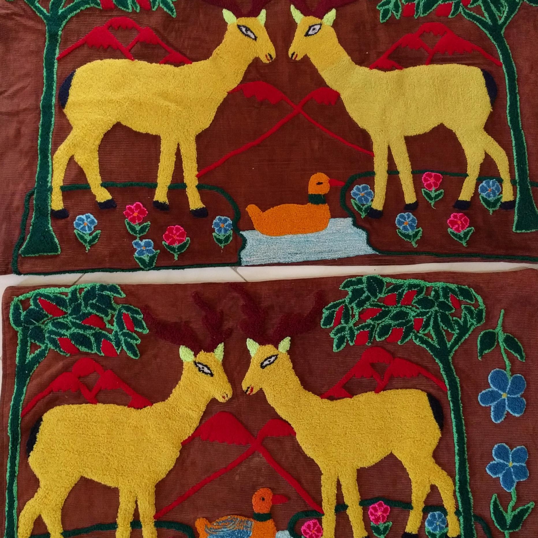 1 جفت رو پشتی مخمل آنتیک گلدوزی شده با طرح برجسته فوق العاده زیبا