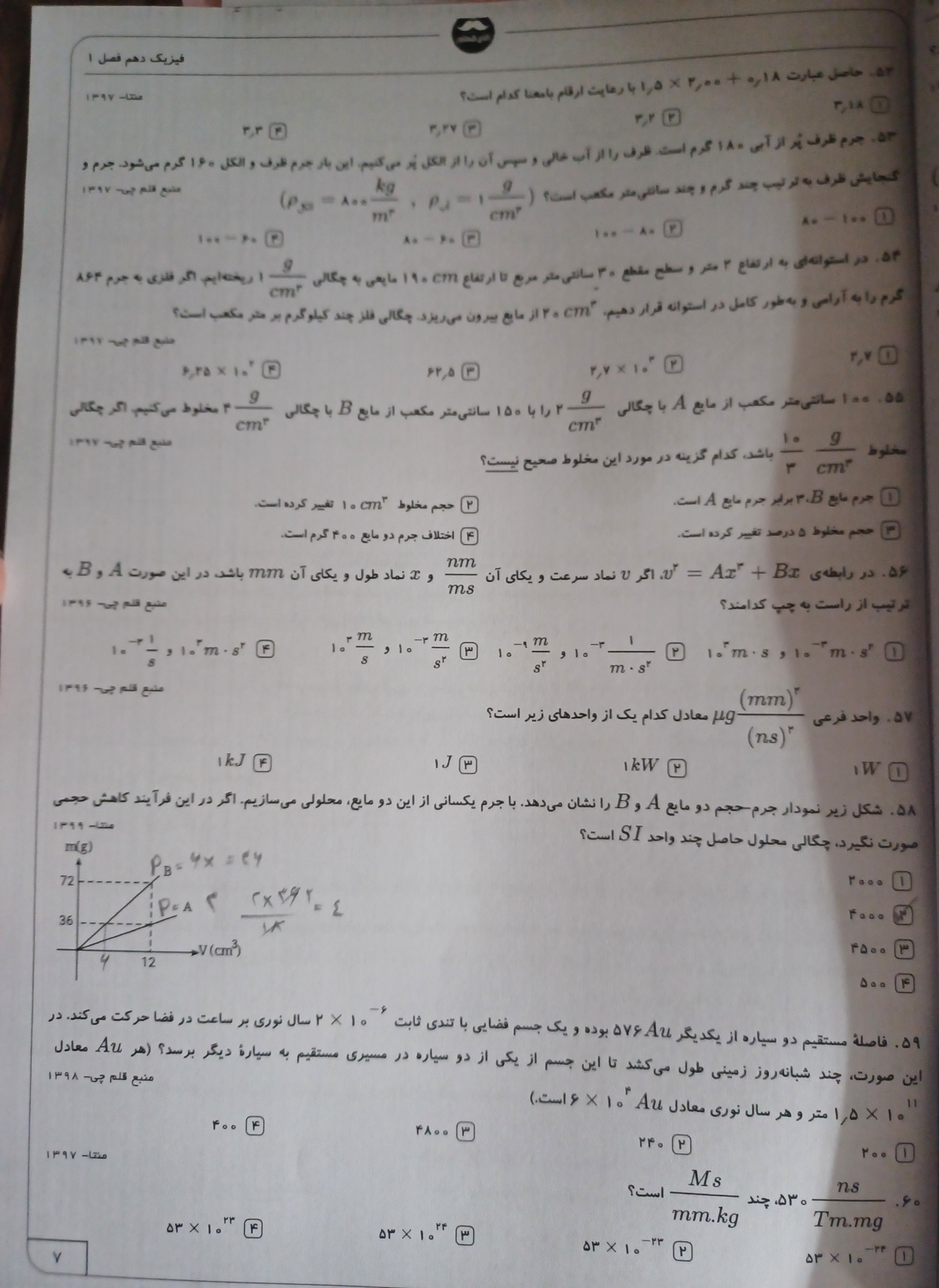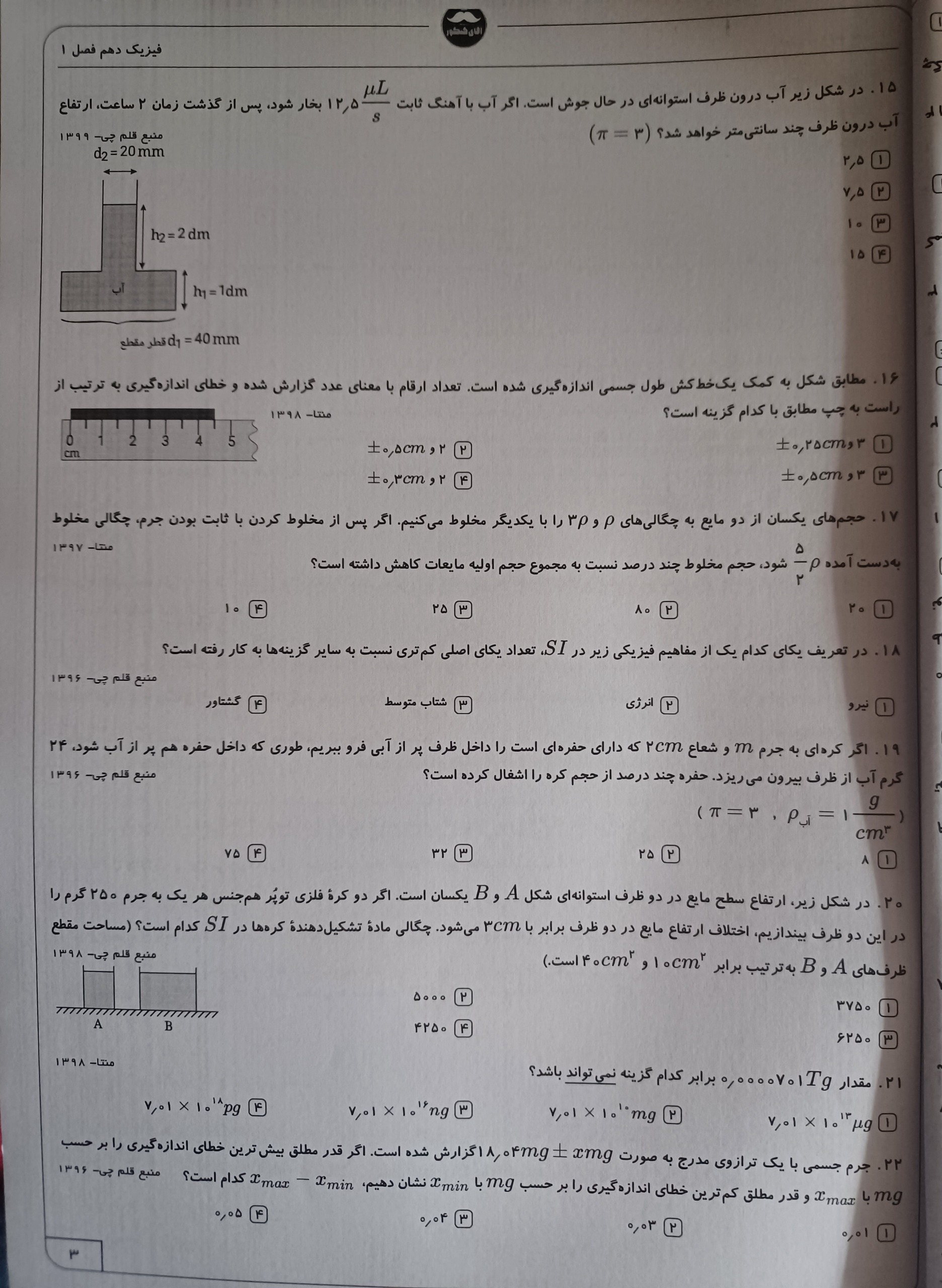 100 تست فیزیک دهم تجربی فصل اول همراه پاسخ