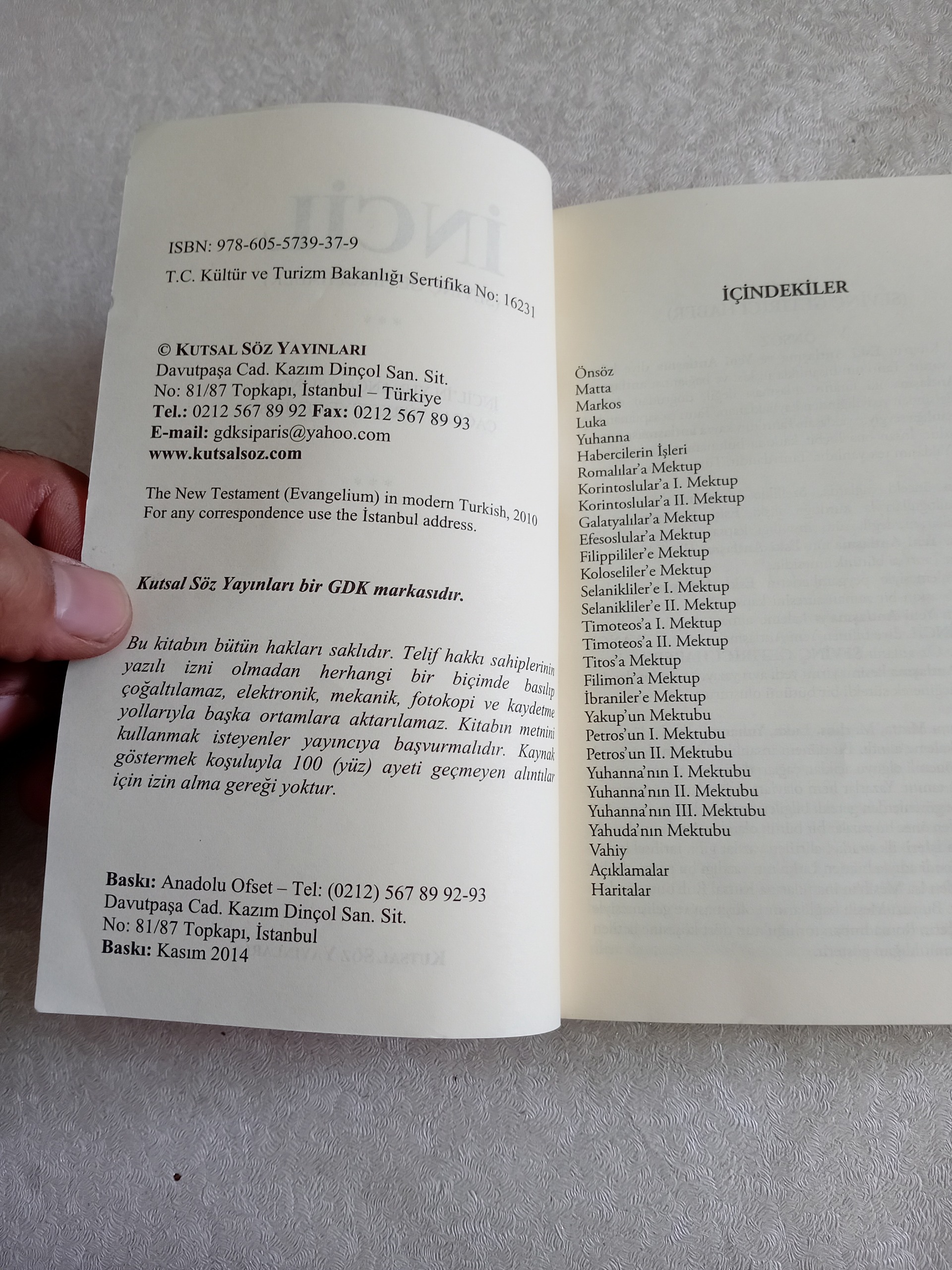 incil ترکی. چاپ ترکیه