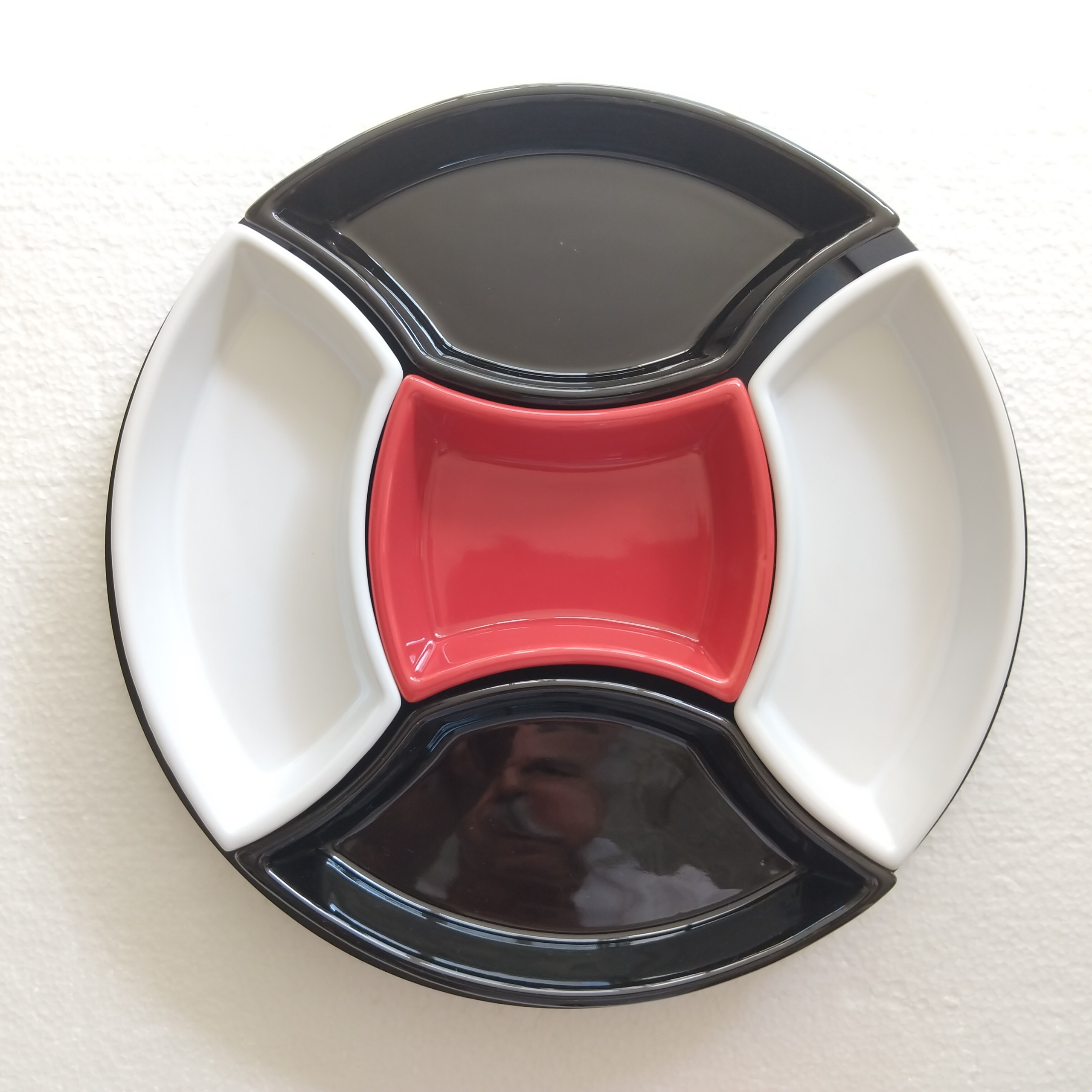 اردو خوری چینی 5 ظرف 3 رنگ با سینی چوبی