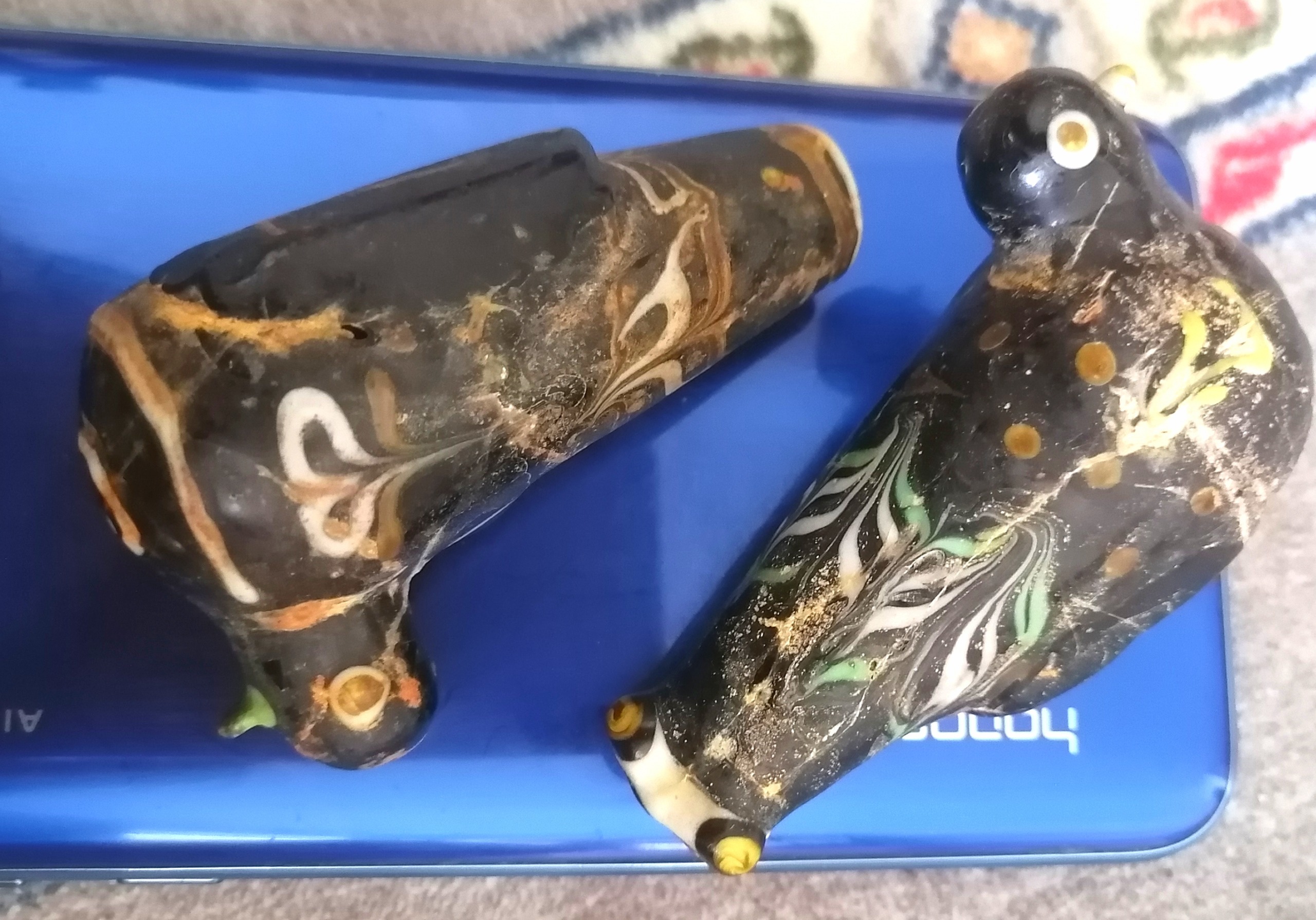 جفت مجسمه قدیمی پرنده بسیار زیبا و با اصالت جنسشو نمیدونم چی هست مثل مهره های قدیمی هست