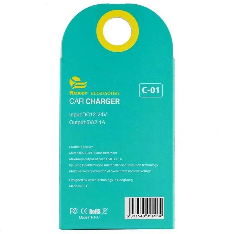 مشخصات کلی شارژر فندکی Rexer C-01 2.1A