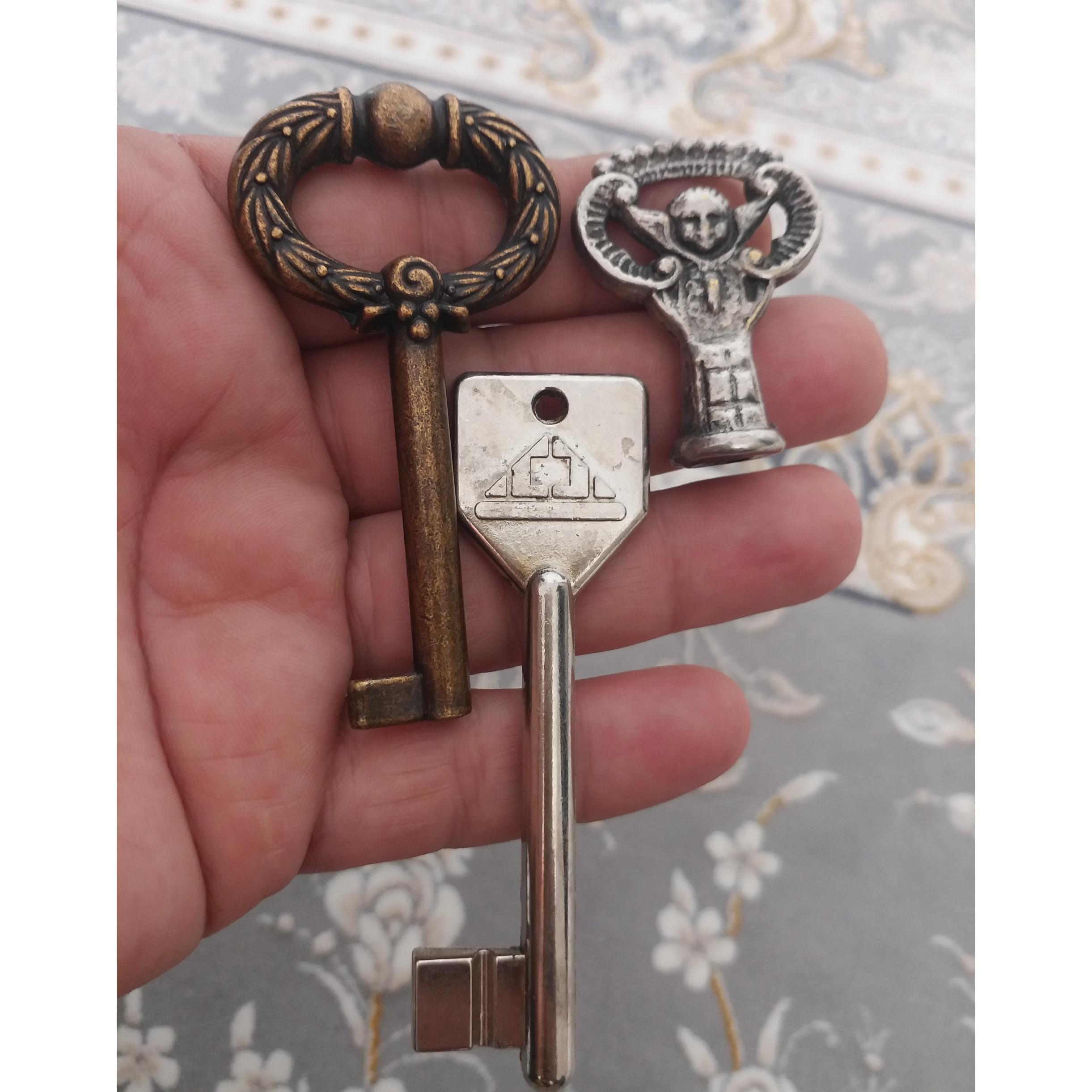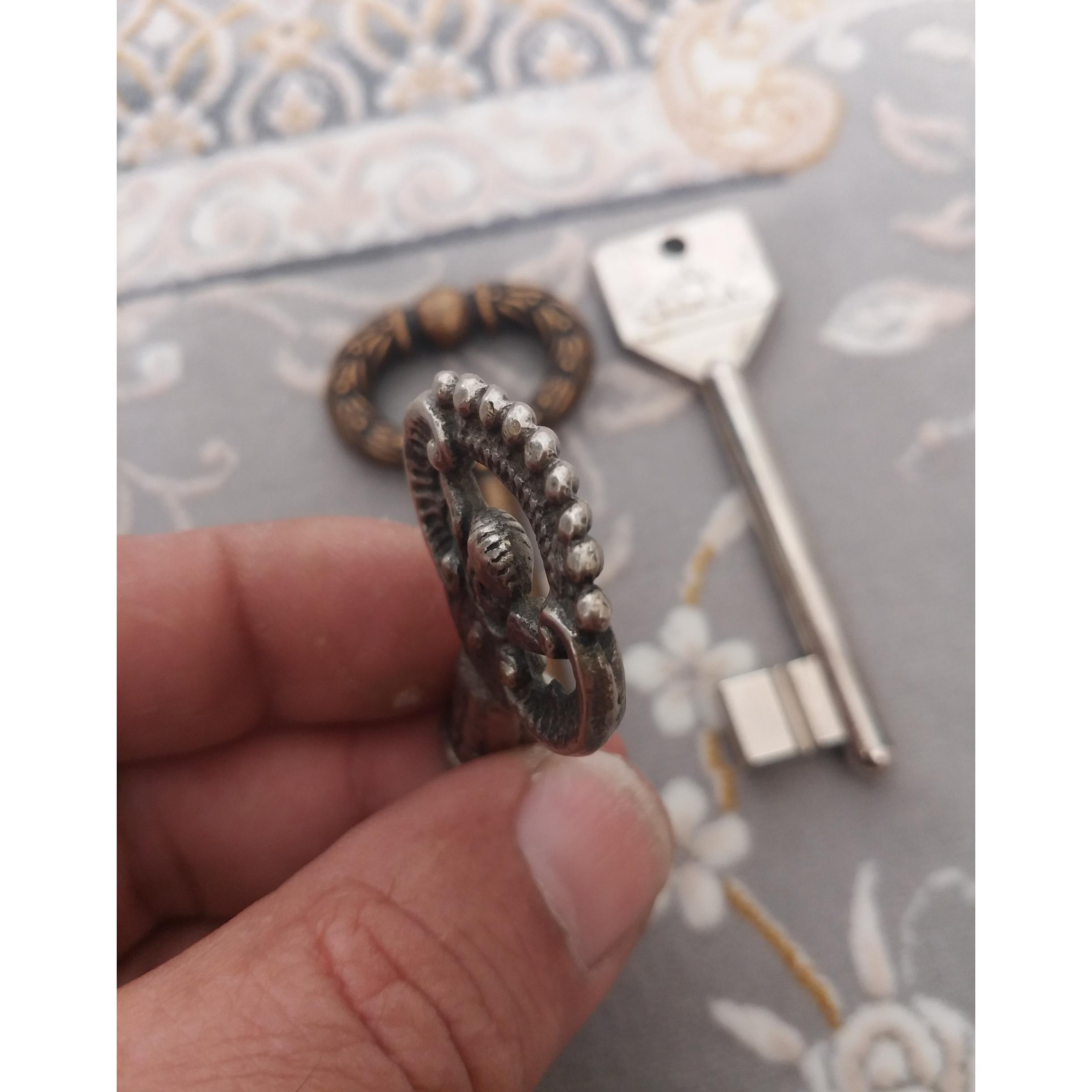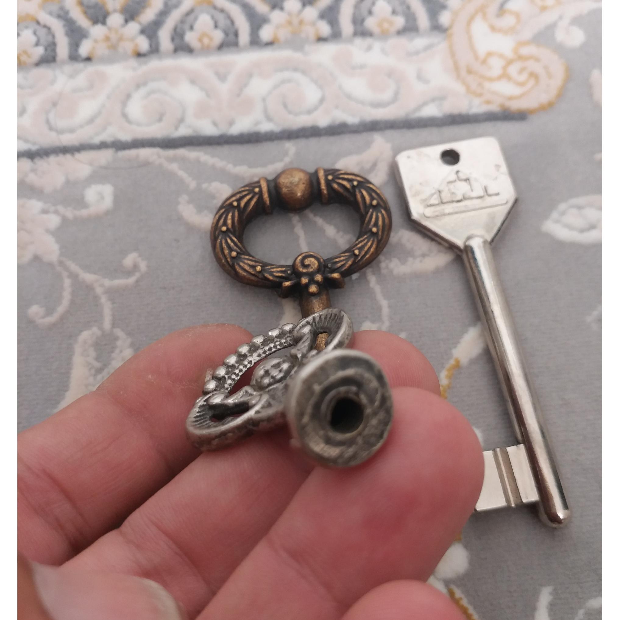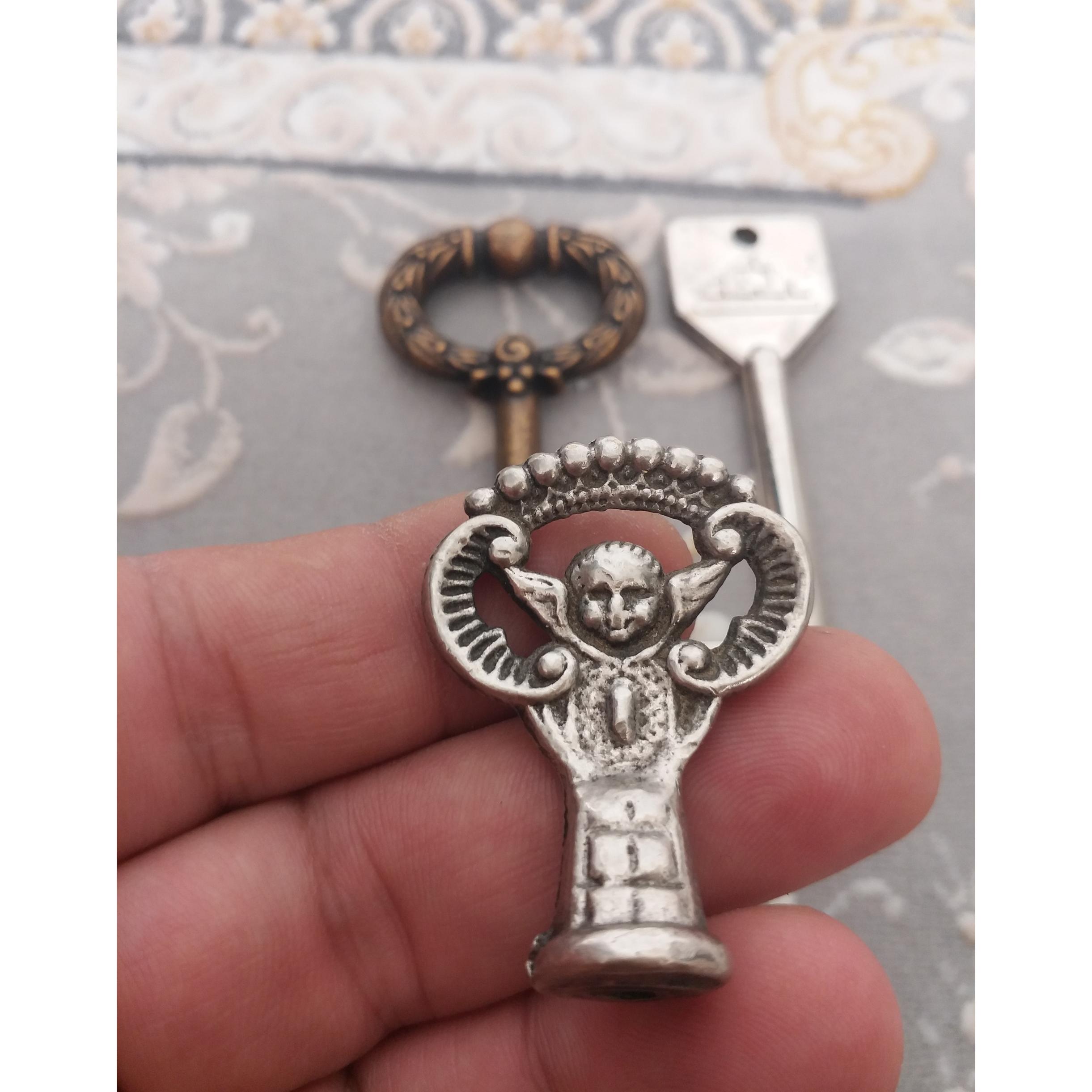 سر کلید برنجی روکش ابکاری کروم طرح فرشته دو رو کاملا سالم و قدیمی بدون ترک