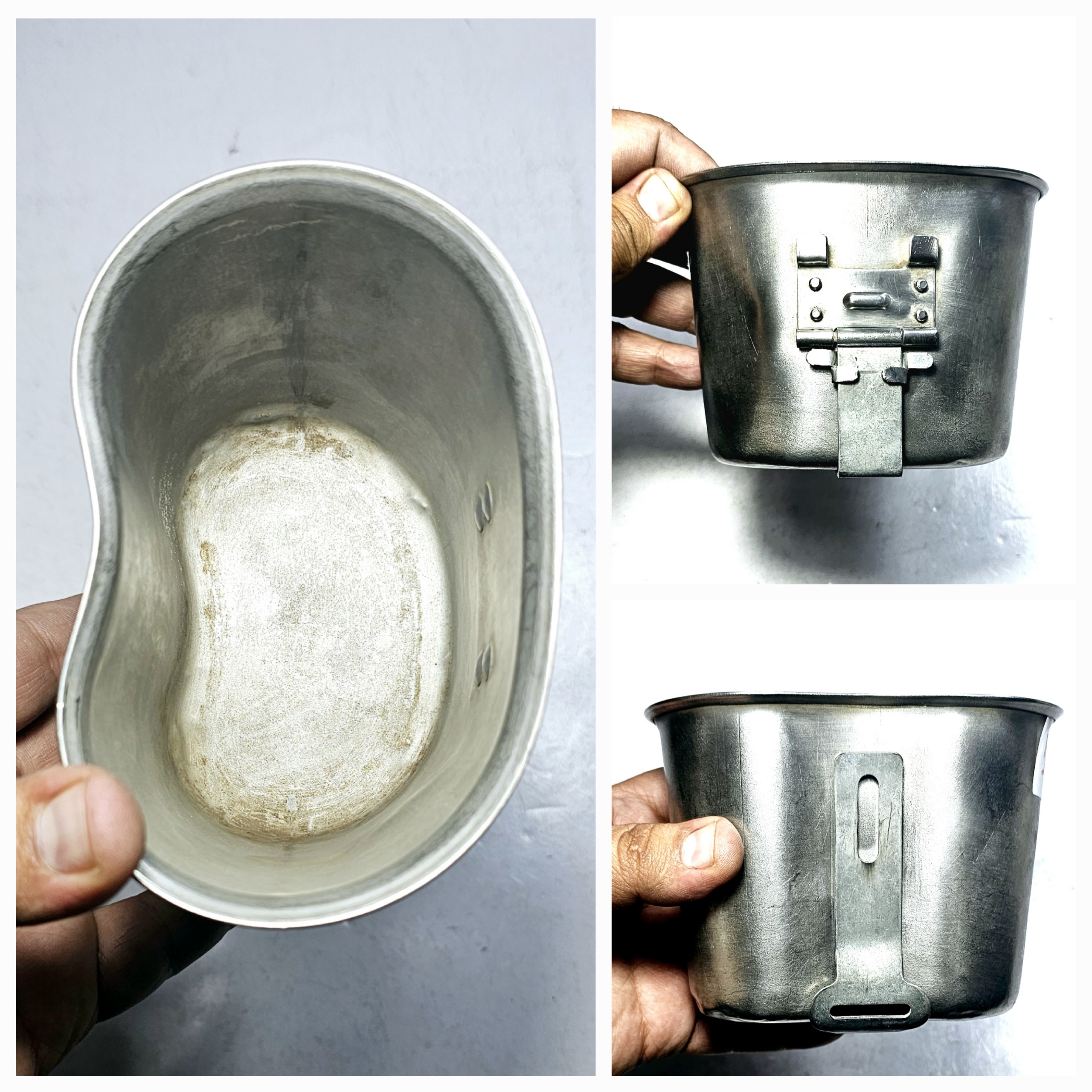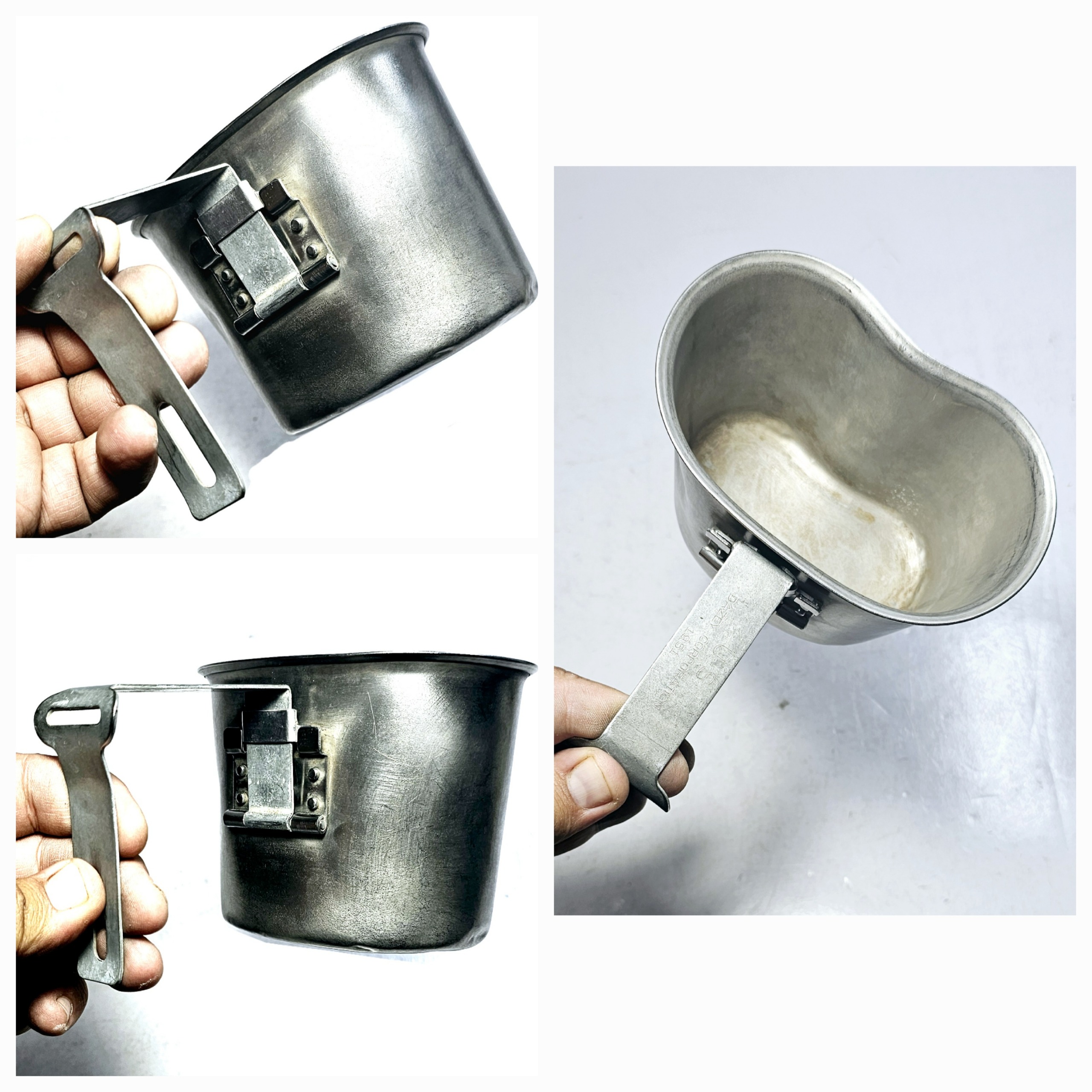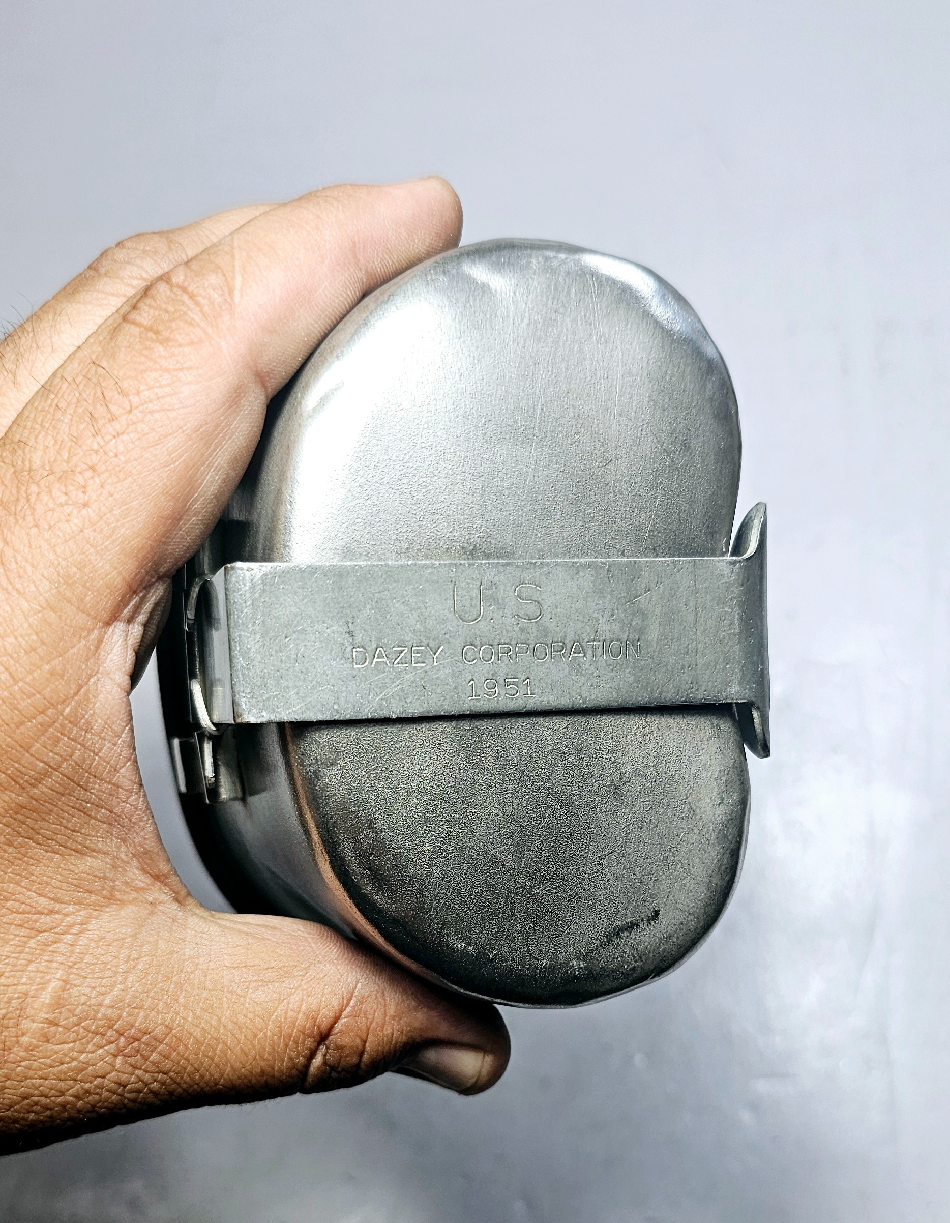 جا قمقمه ای آمریکایی نظامی اصلی یا یقلوی قمقمه نظامی با کیفیت عالی و قدیمی ، سال تولید 1951 , سال ساخت ، کشور و مشخصات روی دسته حک شده است ، به علت قدمت دارای خط و خش و فرورفتگی های جزئی میباشد که در تصاویر مشخص است