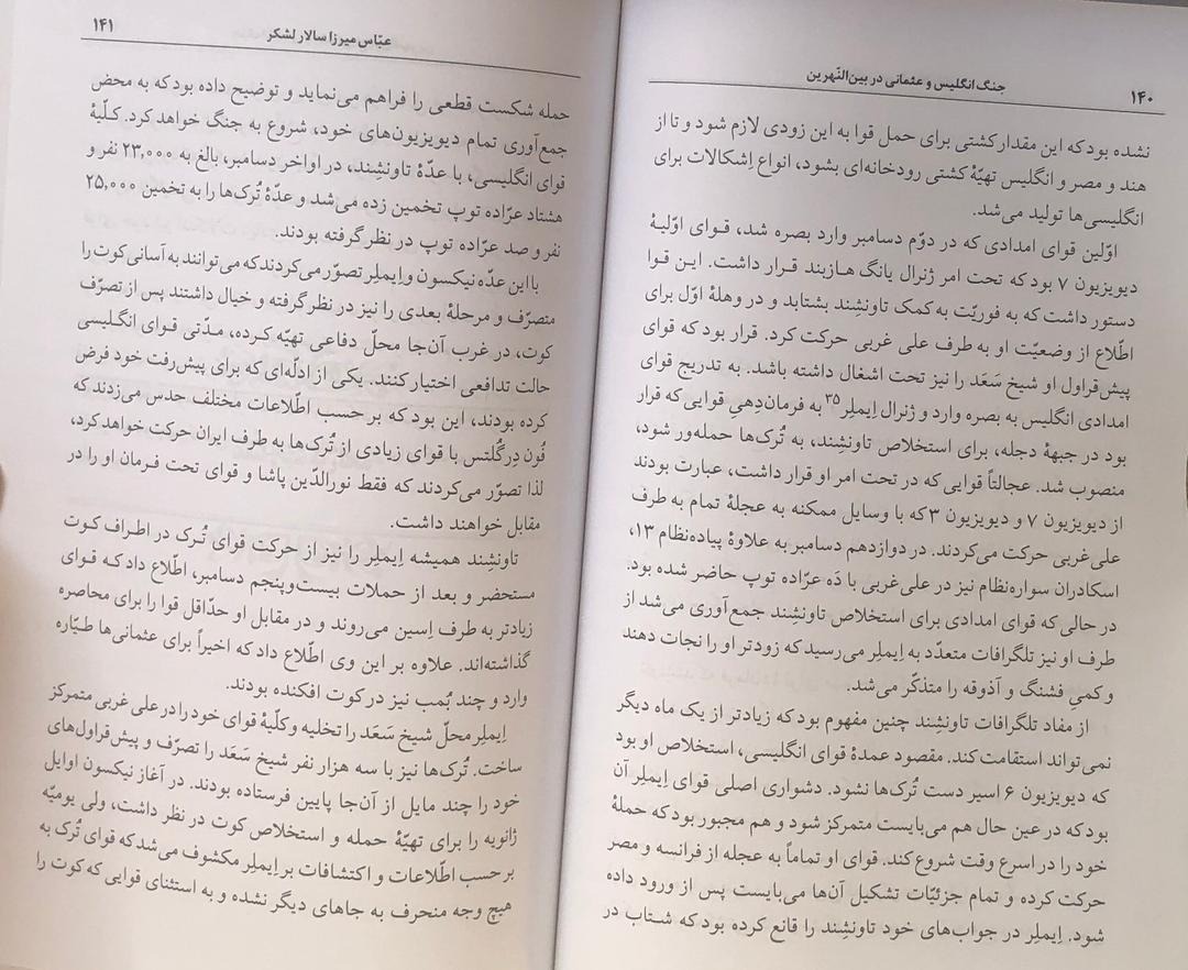 کتاب از تحولات سیاسی، جغرافیایی، و تاریخی ناشی از جنگ جهانی اول، در بین النهرین، سخن می گوید. اگر در نظر داشته باشیم که سالار لشکر یکی از نخستین ایرانیانی است که در مدارس عالی نظامی اروپا تحصیل کرده و با تازه ترین اصول نظامی گری آن عصر آشنا بوده،...آن گاه اهمیت