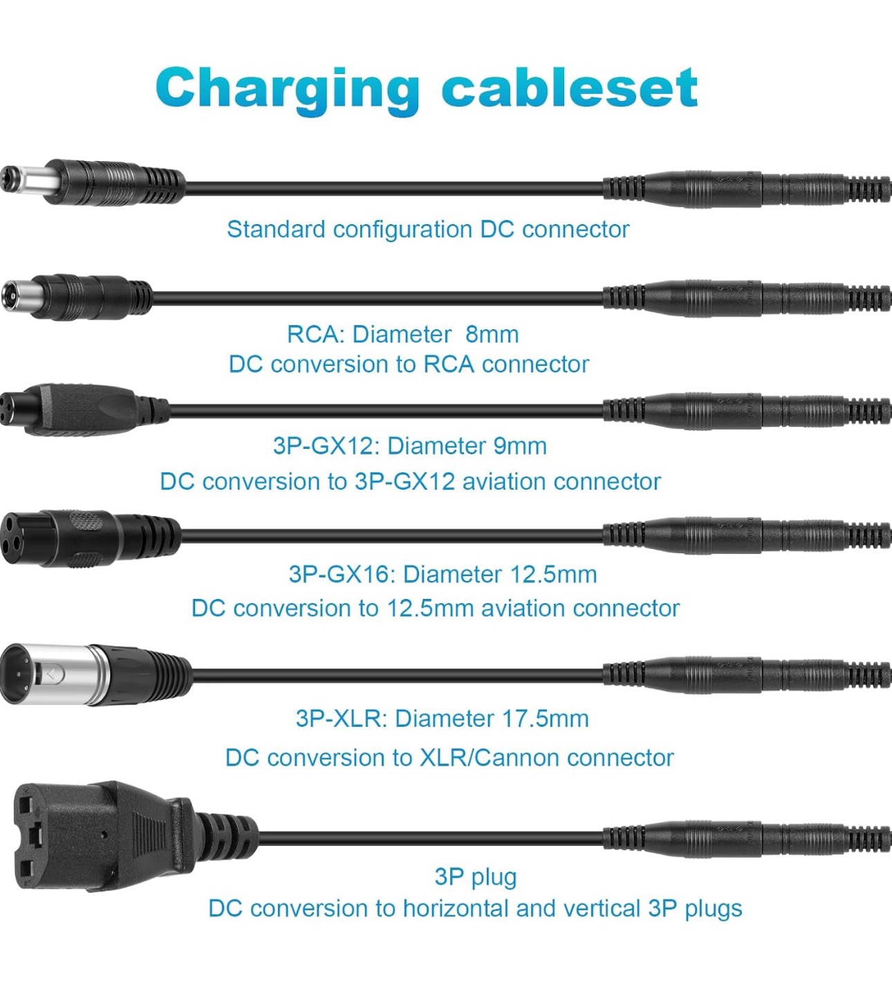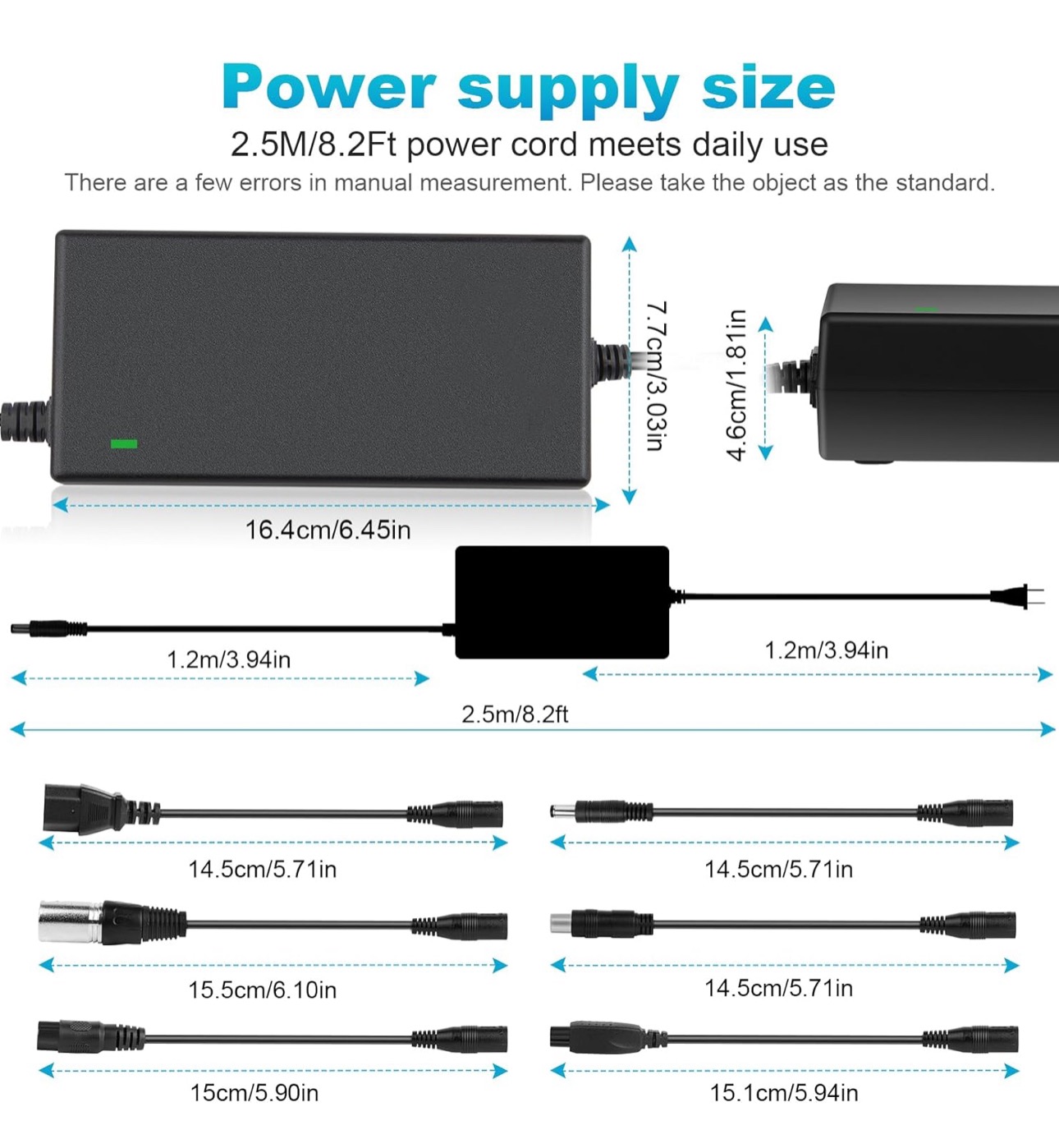 سازگاری با چند دستگاه 7 در 1این شارژر مجهز به 7 سر قابل تعویض است و به عنوان یک شارژر برقی 48 ولت، شارژر باتری 48 ولت و شارژر باتری و باتری اسکوتر عمل میکند. مناسب برای باتریهای 48 ولت 13 سل مدلهای شارژر Jetson Haze، شارژر Rad Power، شارژر برقی Ancheer و شارژر Lectic (لطفاً قبل از ثبت سفارش، پارامترهای باتری را بررسی کنید!)