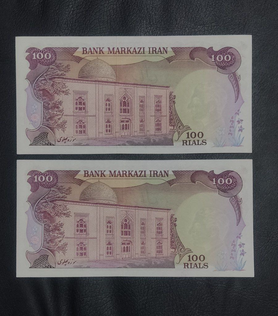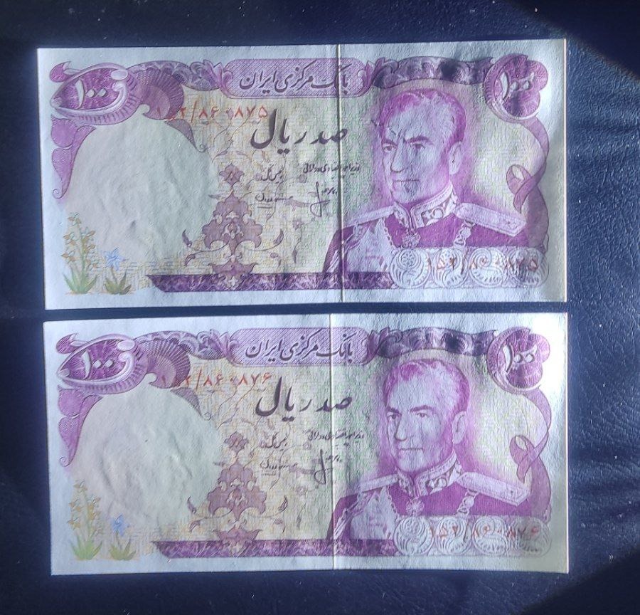 اسکناس جفت کیفیت بانکی صد ریال .عکس زیر نور گذاشته شده