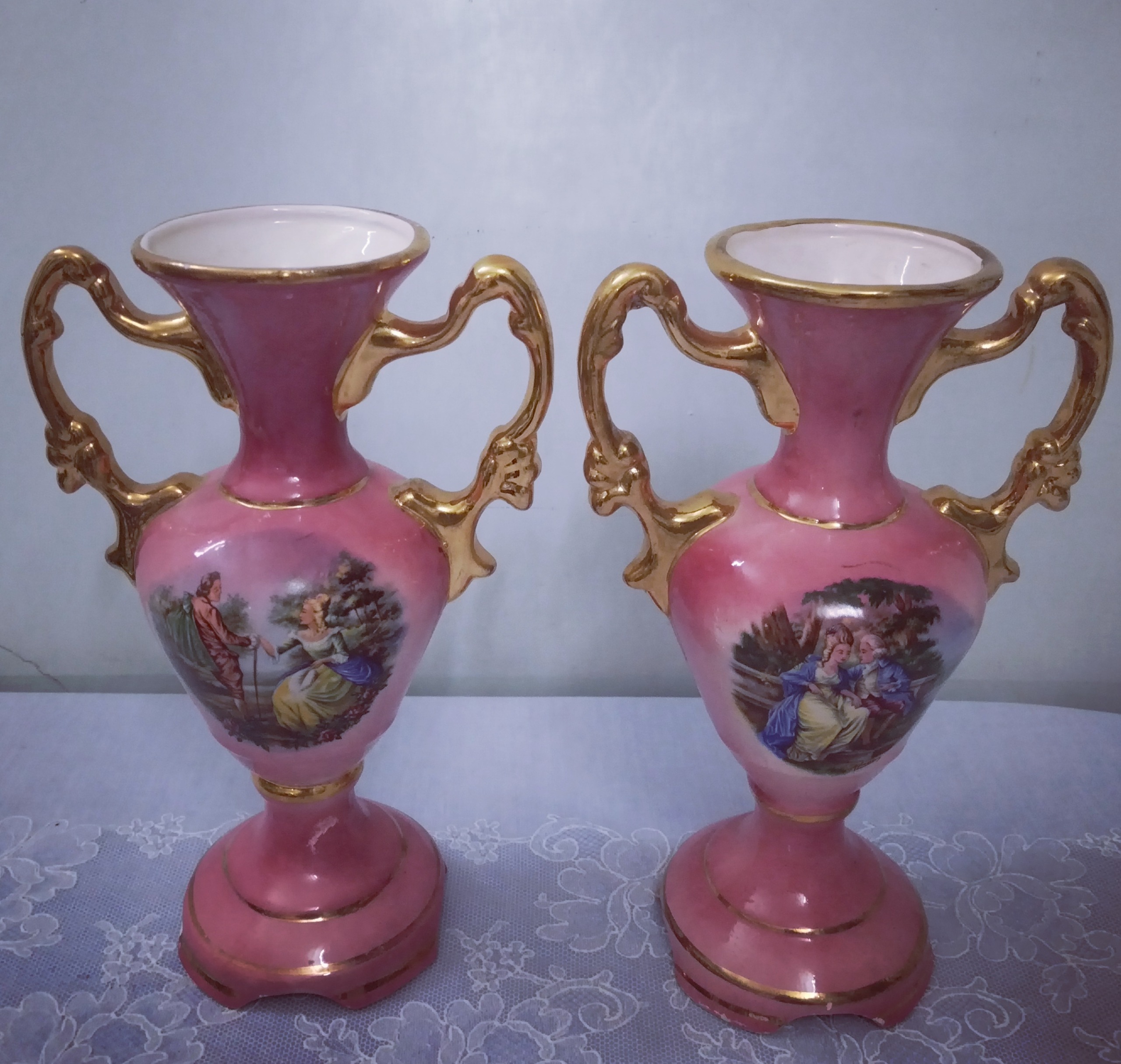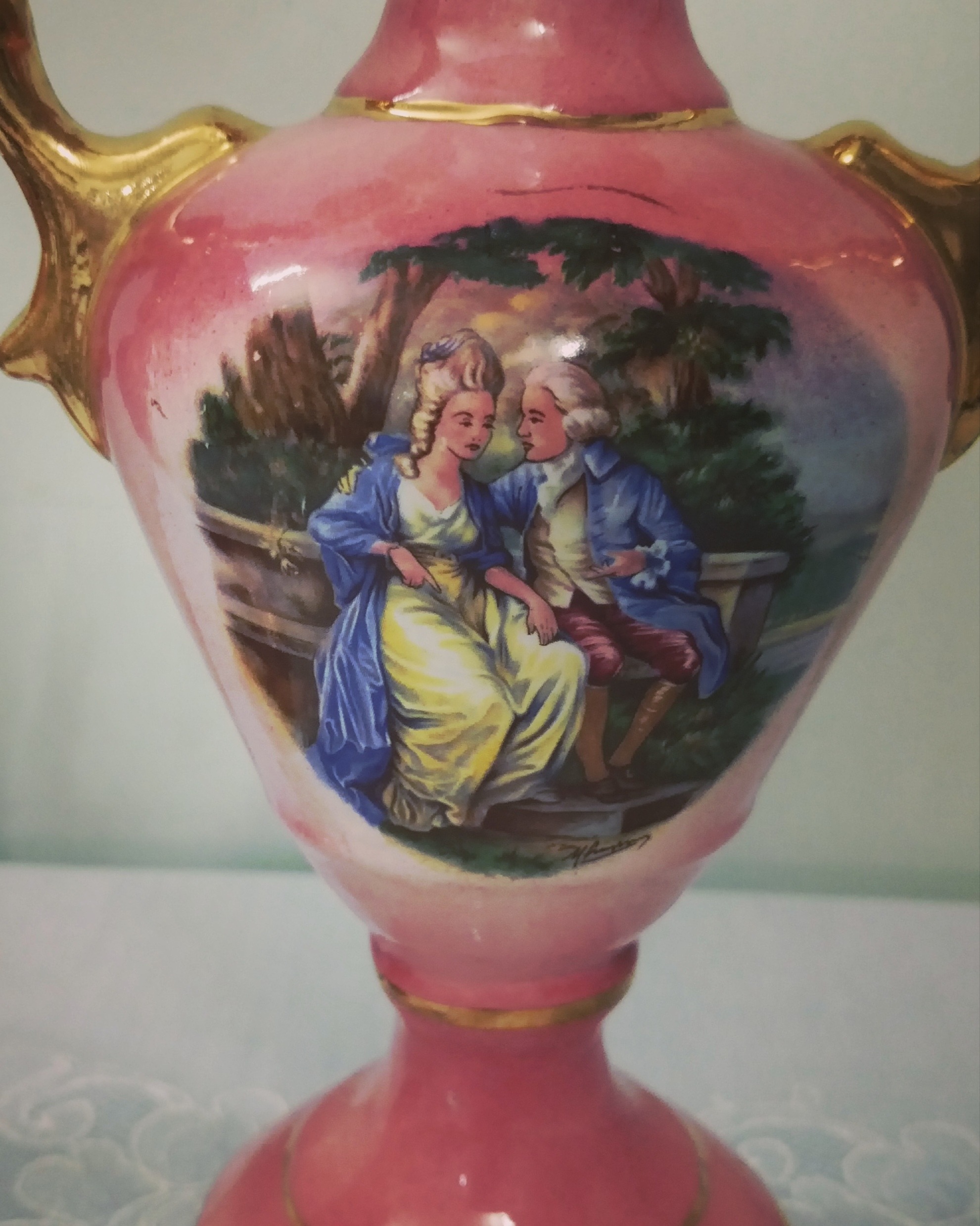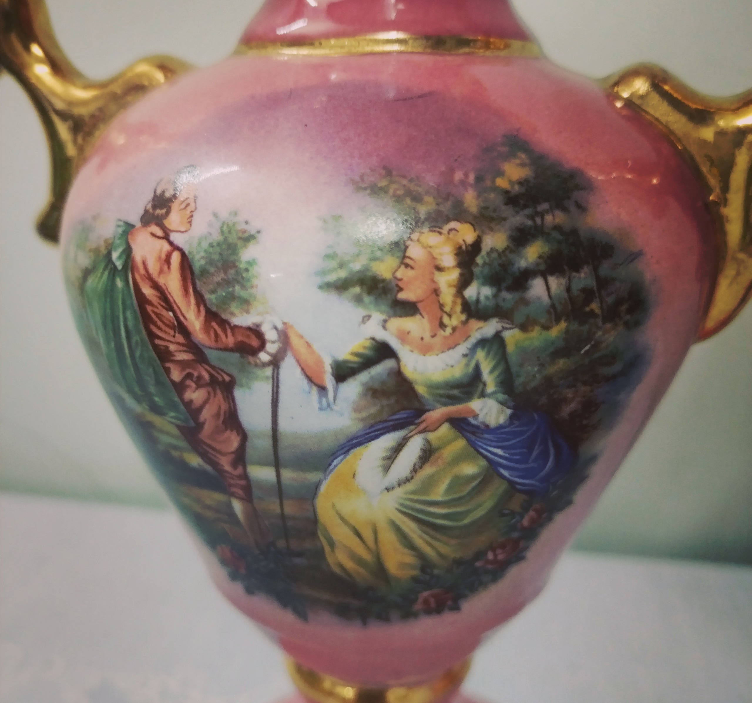 گلدان قدیمی دست و لبه طلایی قدیمی