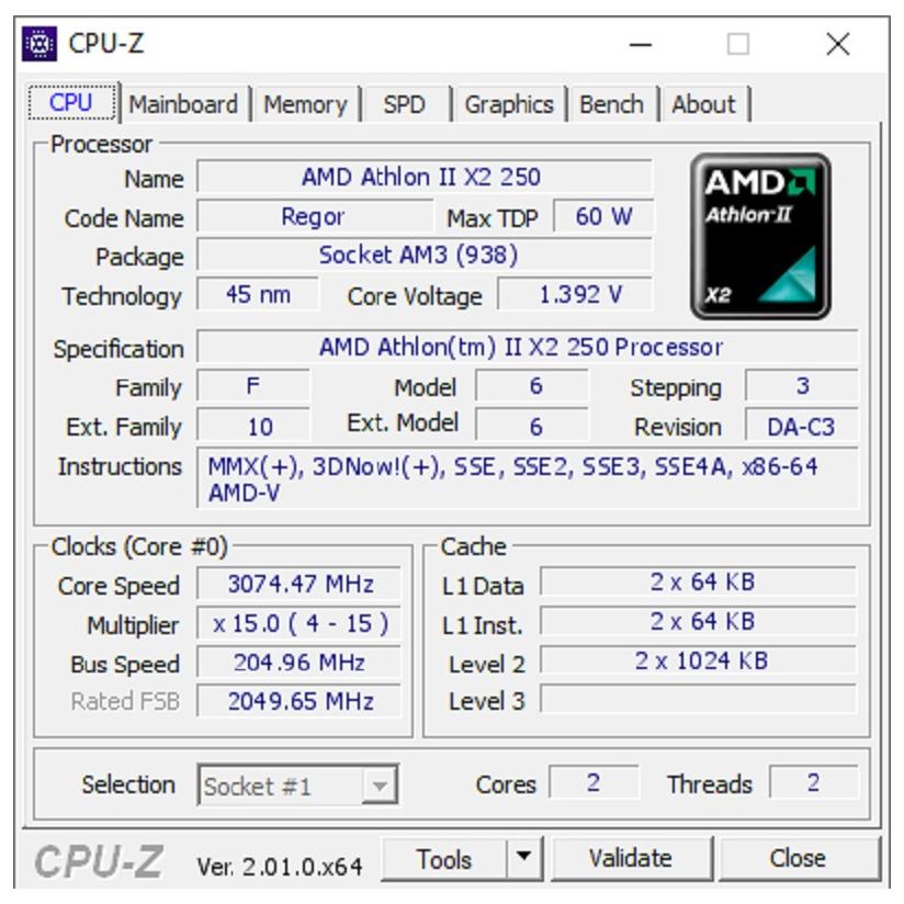 مشخصات فنی پردازنده AMD Athlon II X2 250