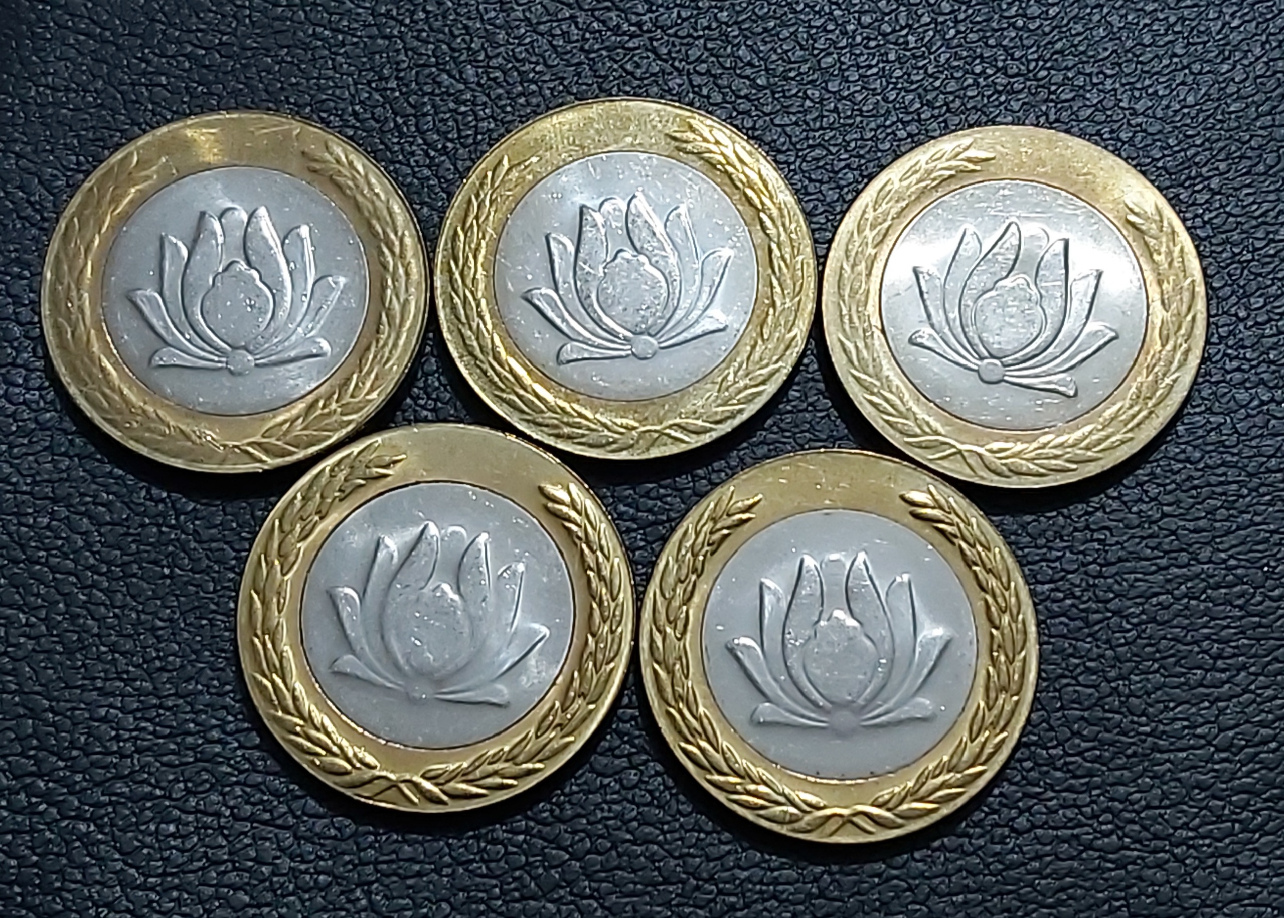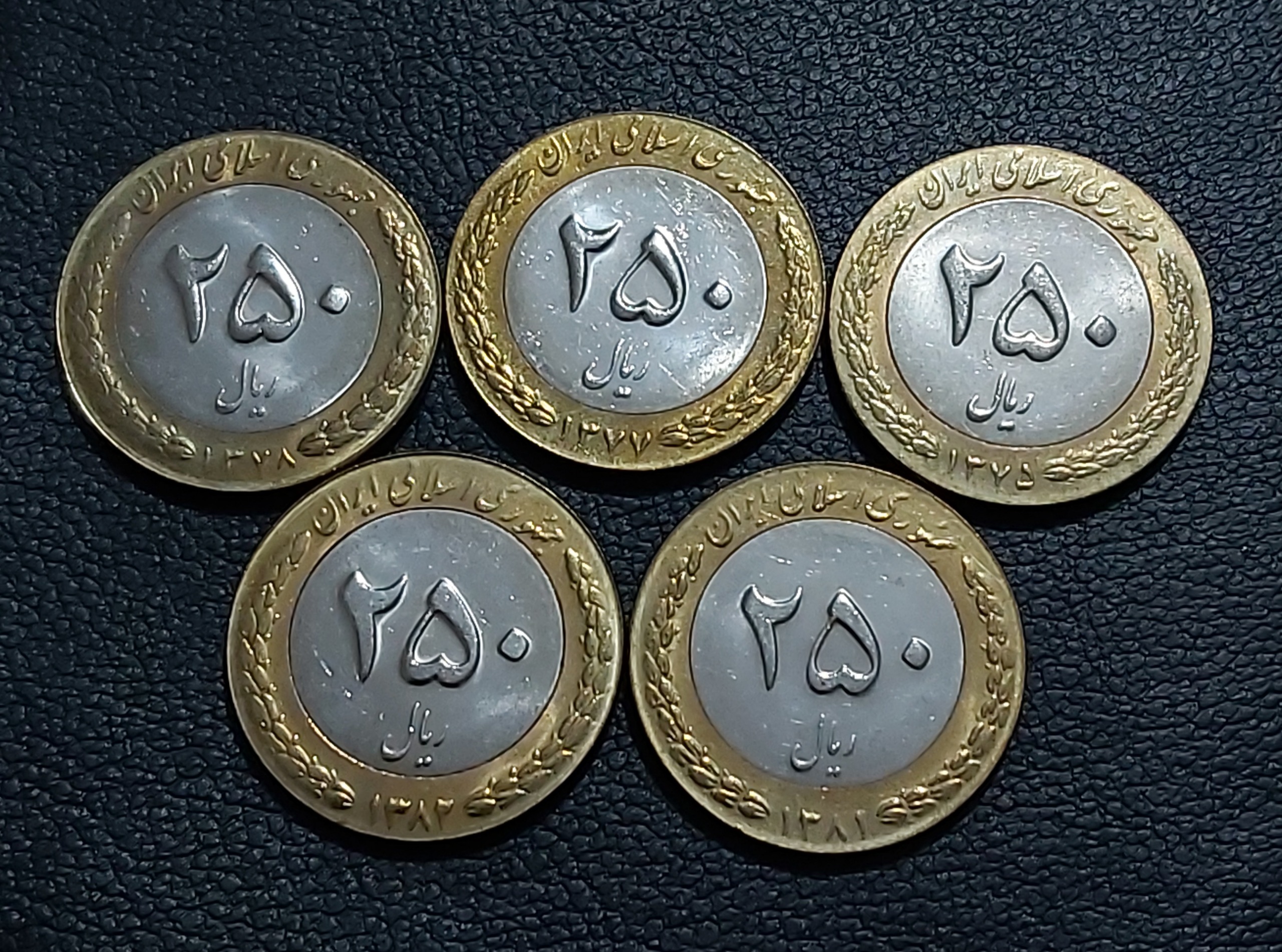 5 عدد 25 تومنی دو رنگ تاریخ مختلف بانکی طبق تصویر