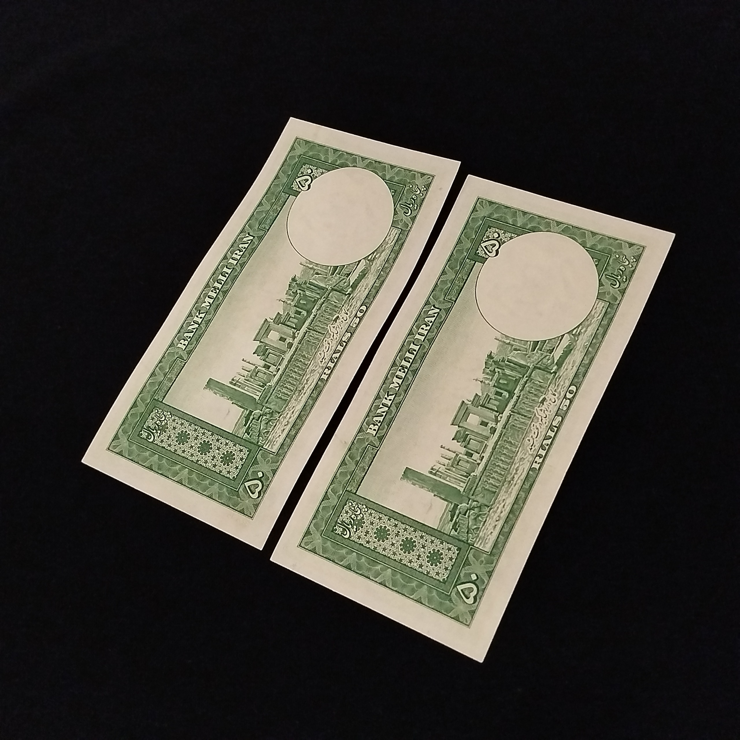 جفت با فاصله اسکناس 50ریالی بانک ملی 1330