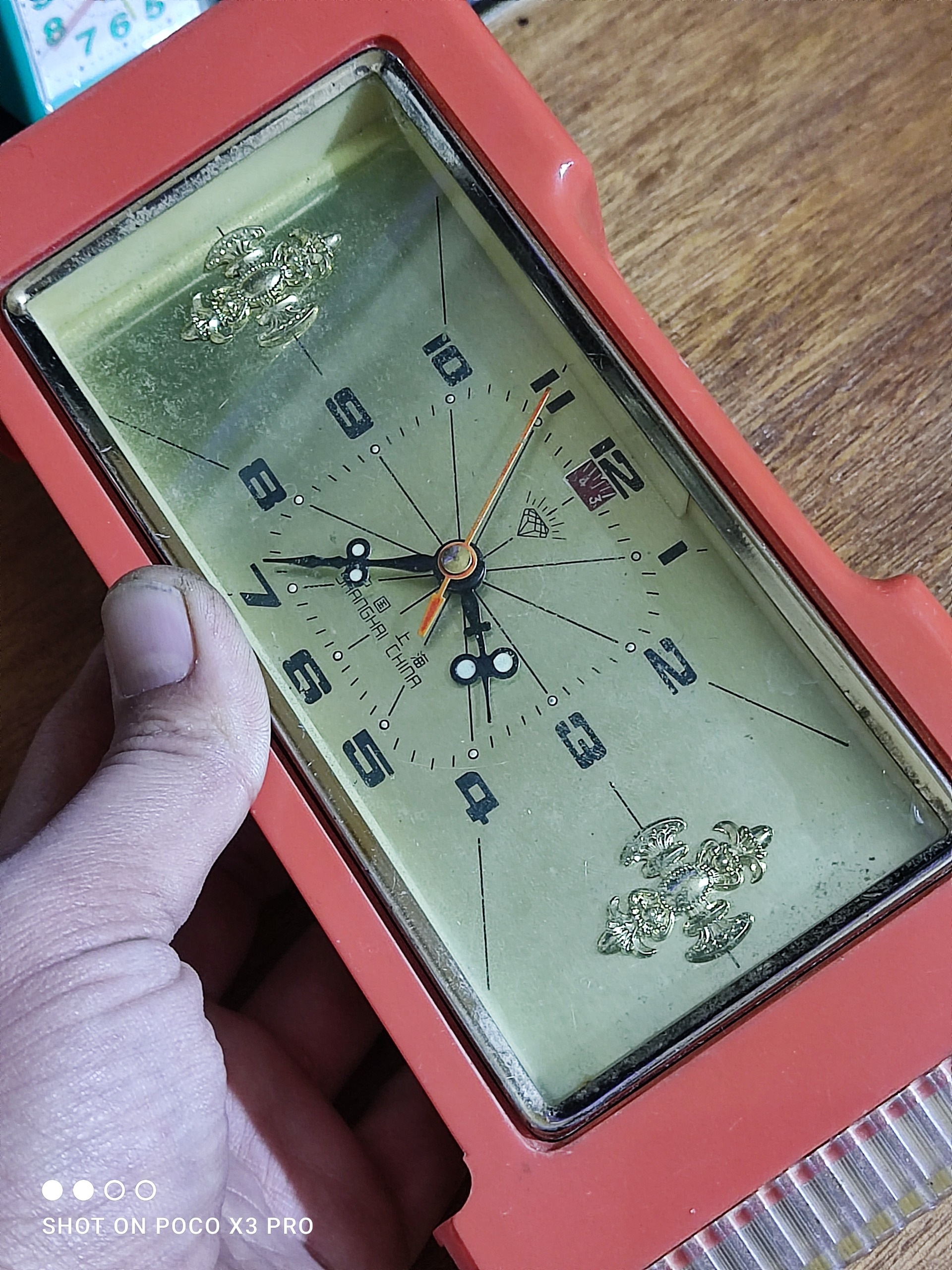 ساعت رومیزی قدیمی بسیار کمیابه این مدل ساعت مطابق تصاویر خرید کنید پیچ کوک ساعت هیچکدوم نداره شکستگی غری اصلا نداره زیبا و خاص جنس بدنه از پلاستیک خیلی محکمی ساخته شده صفحه ساعت بی نهایت زیبا هست