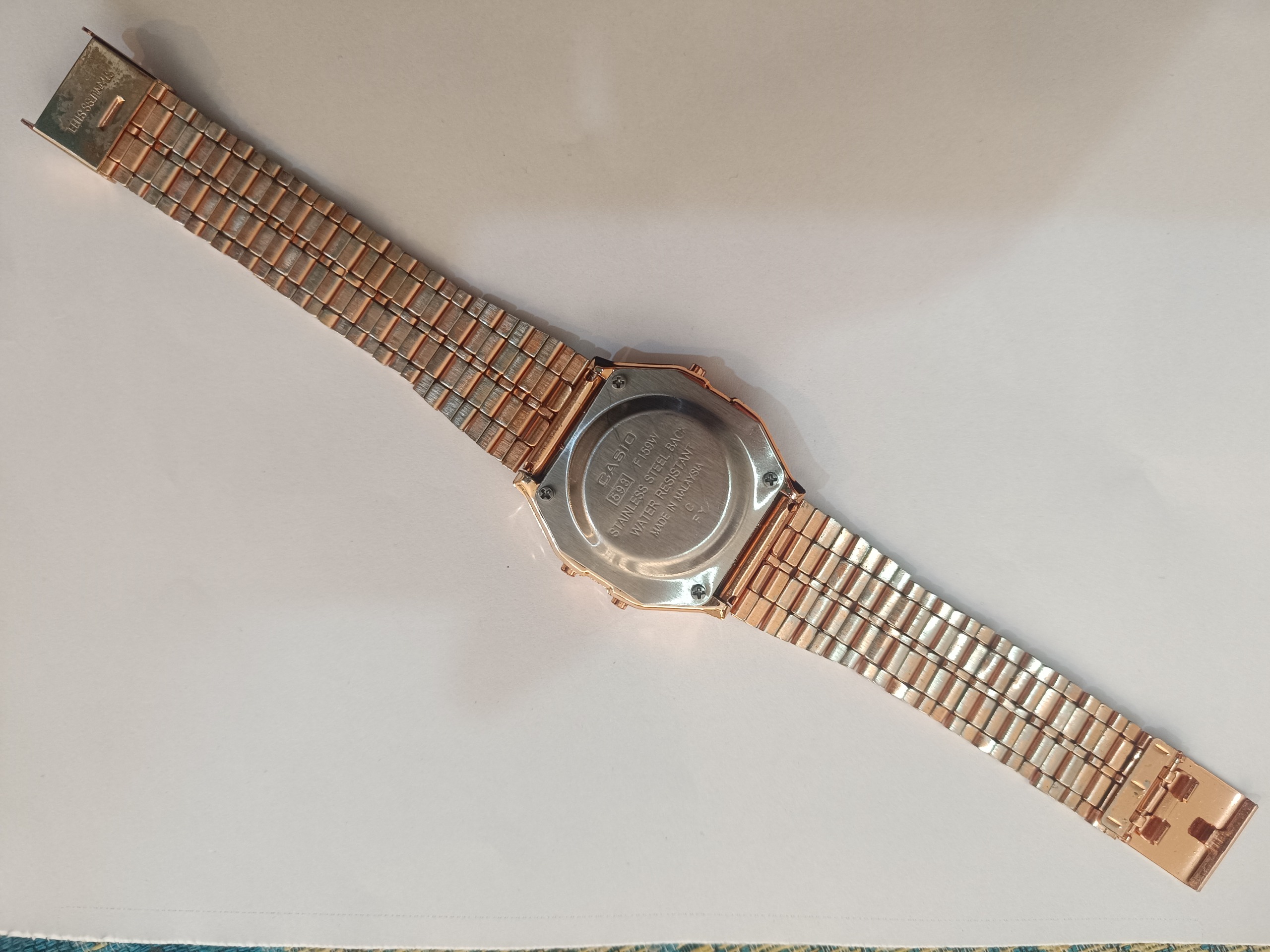 ، فروش یک عدد ساعت مچی کامپیوتری با برند : CASIO ، ساخت کشور مالزی ، ساعت سالم و در حد نو ، رنگ ساعت مسی غیر ثابت ، بند فلزی ، دارای ( کرنومتر ، چراغ سبز رنگ جهت دید در شب ، زنگ بیدار باش ، زنگ در سر هر ساعت ، نمایش تاریخ و روز ). قیمت : به صرفه.