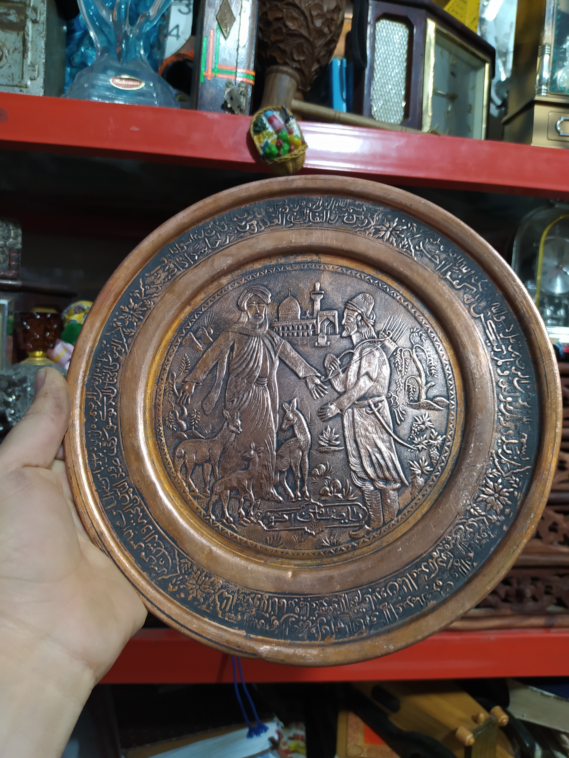 دیوارکوب قدیمی مسی قلمزنی قدمت پهلوی