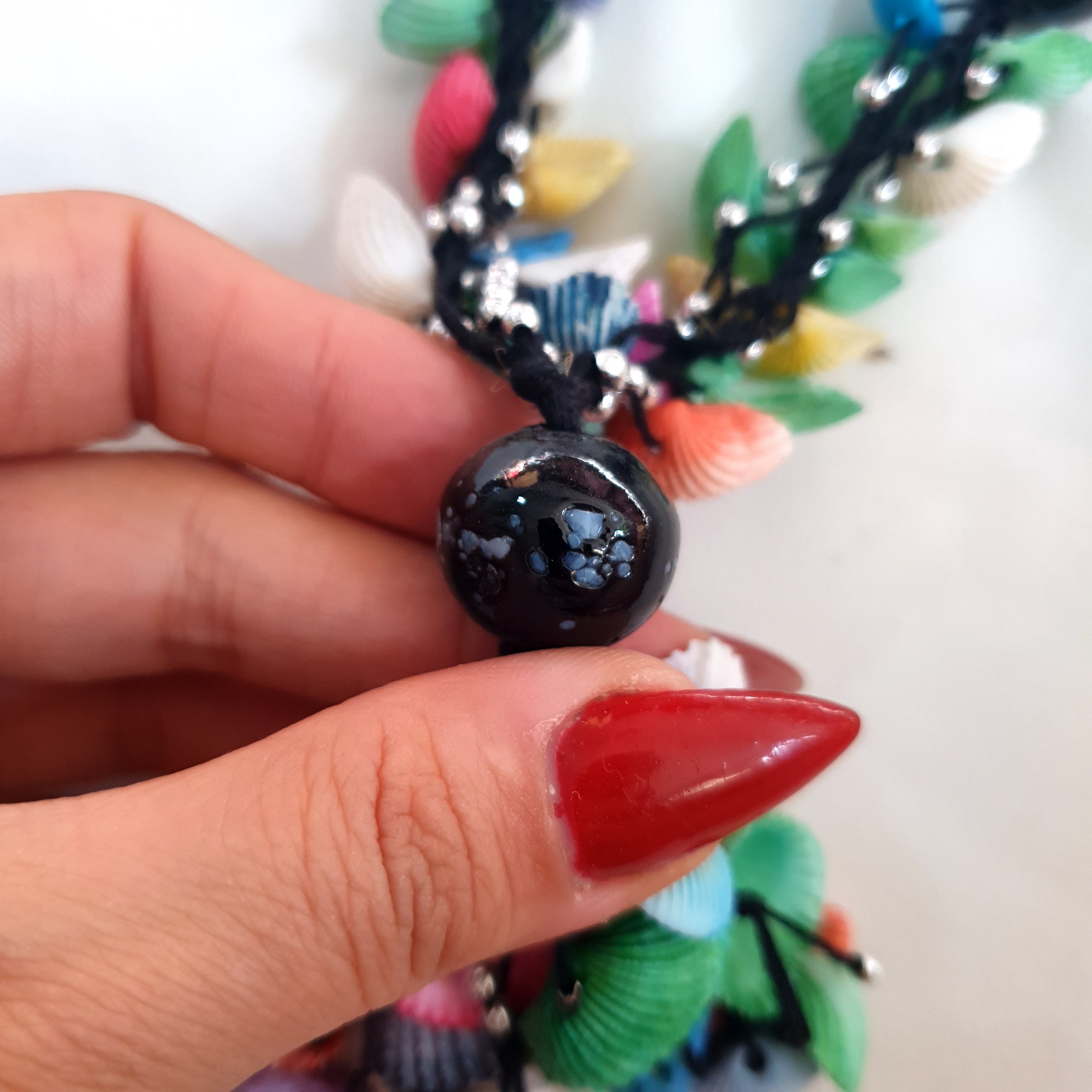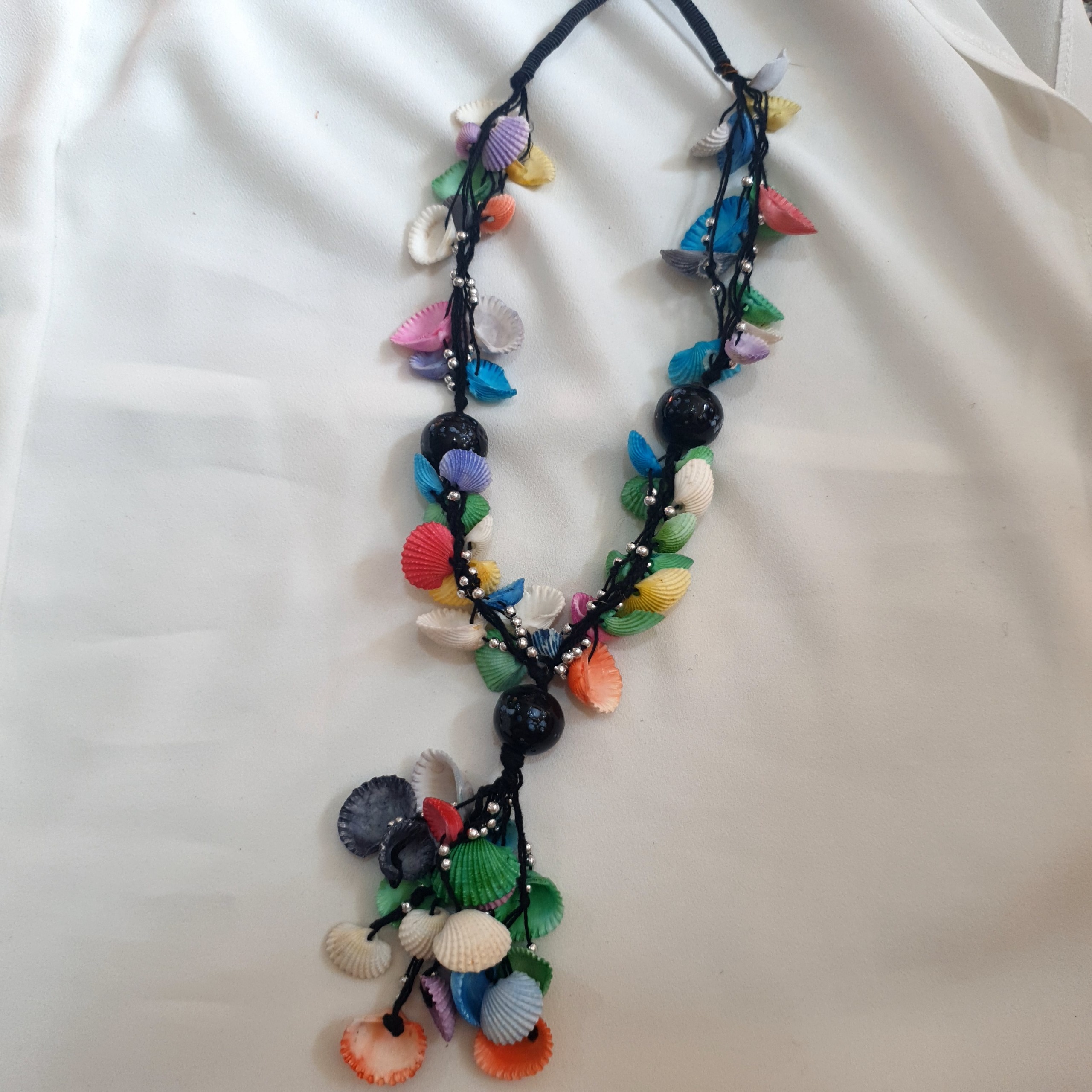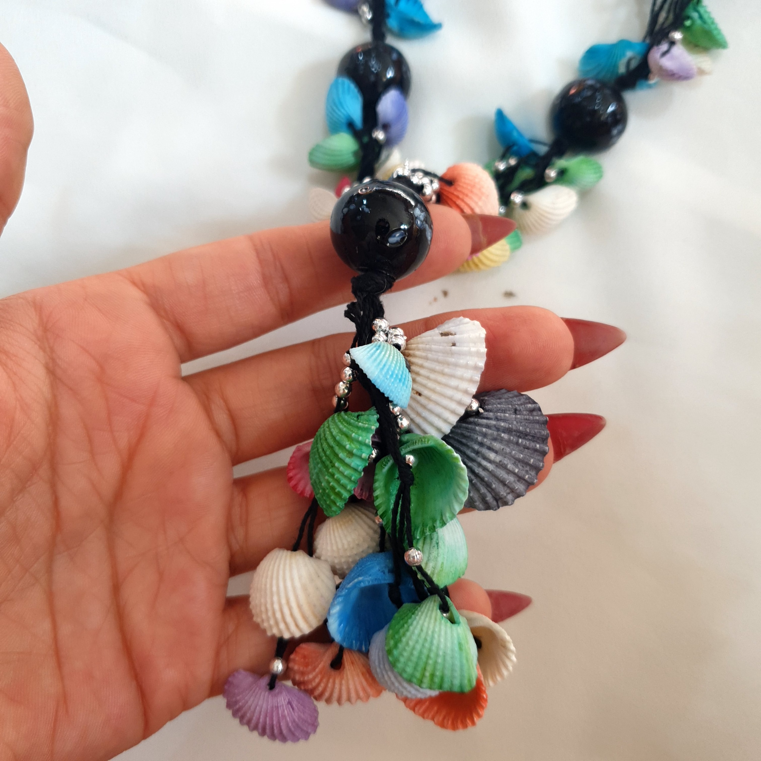 گردن آویز زیبای صدفی با مهره های چیتویی
