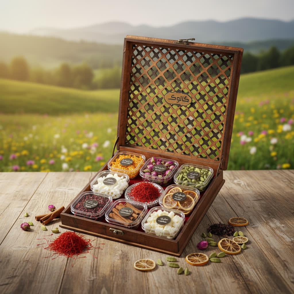 این پک زیبا با ترکیبی از زعفران، گیاهان معطر، دمنوش های درمانی و ادویه های خوش عطر، هدیه ای مناسب برای هر مناسبت رسمی یا دوستانه به شمار می رود.