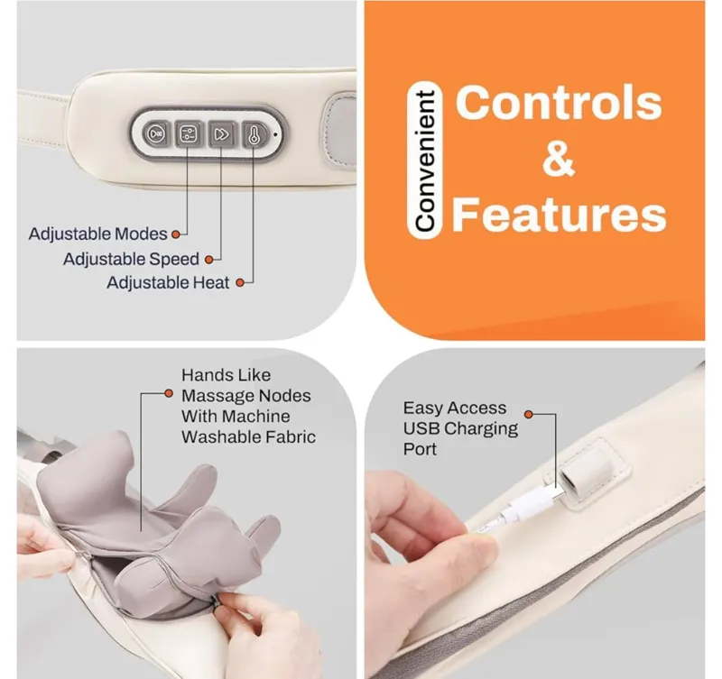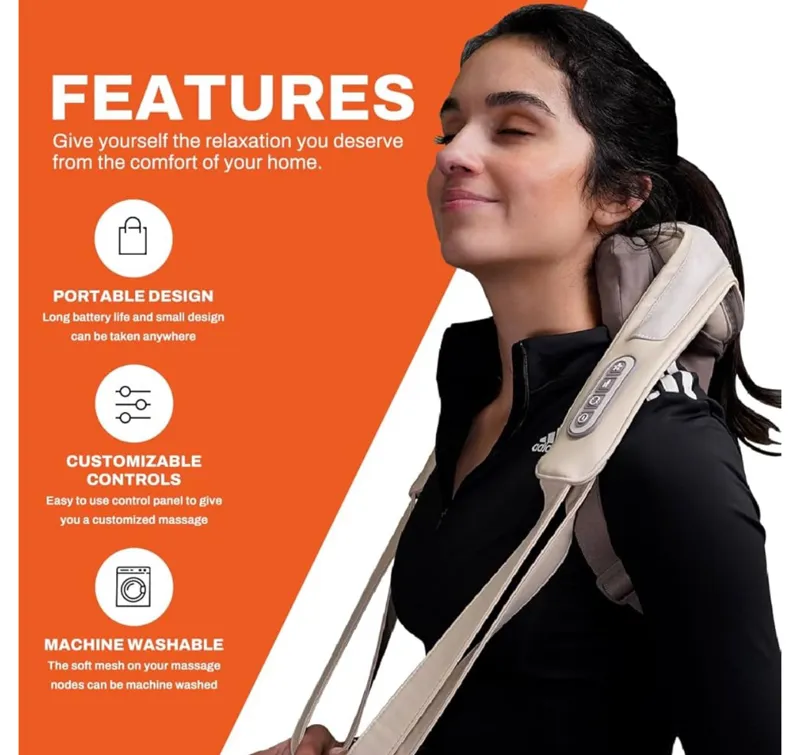 کاربرد چندمنظوره: ماساژور گردن و شانه گرم ما محدود به گردن و شانههای شما نیست. همچنین میتواند ماساژ گردن شیاتسو انجام دهد و میتواند برای ماساژ کمر جهت تسکین کامل تنش استفاده شود.
