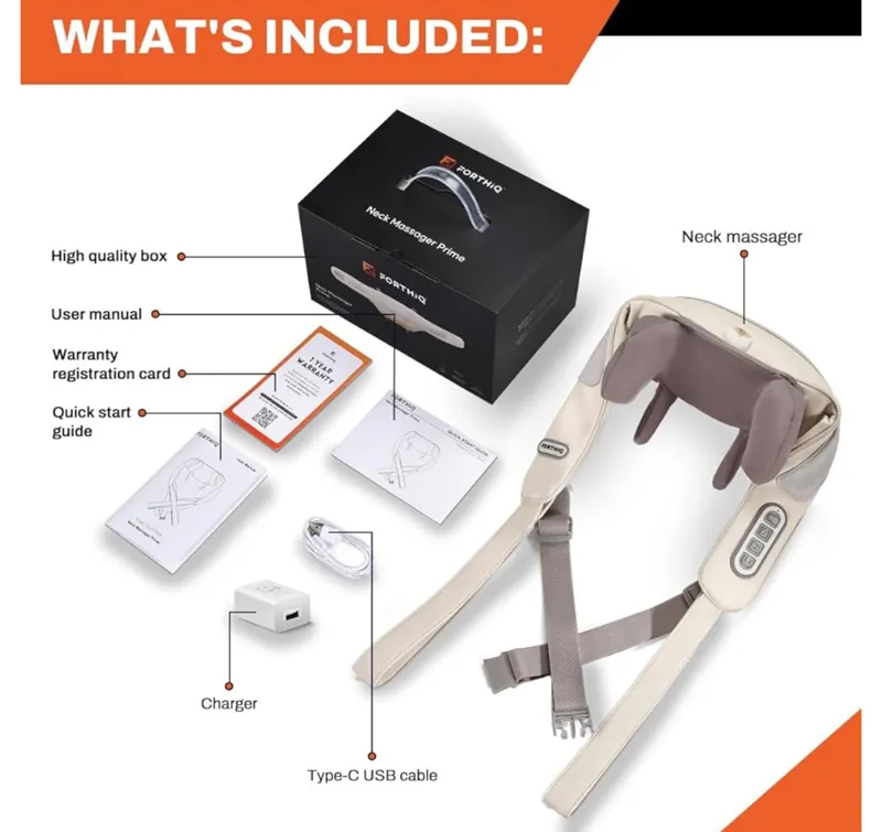 ماساژور گردن FORTHiQ شبیه دست برای تسکین درد بافتهای عمیق، قابلیت تنظیم گرما و سرعت ماساژ، ماساژور کمر با کنترلهای قابل تنظیم، واجد شرایط FSA یا HSA