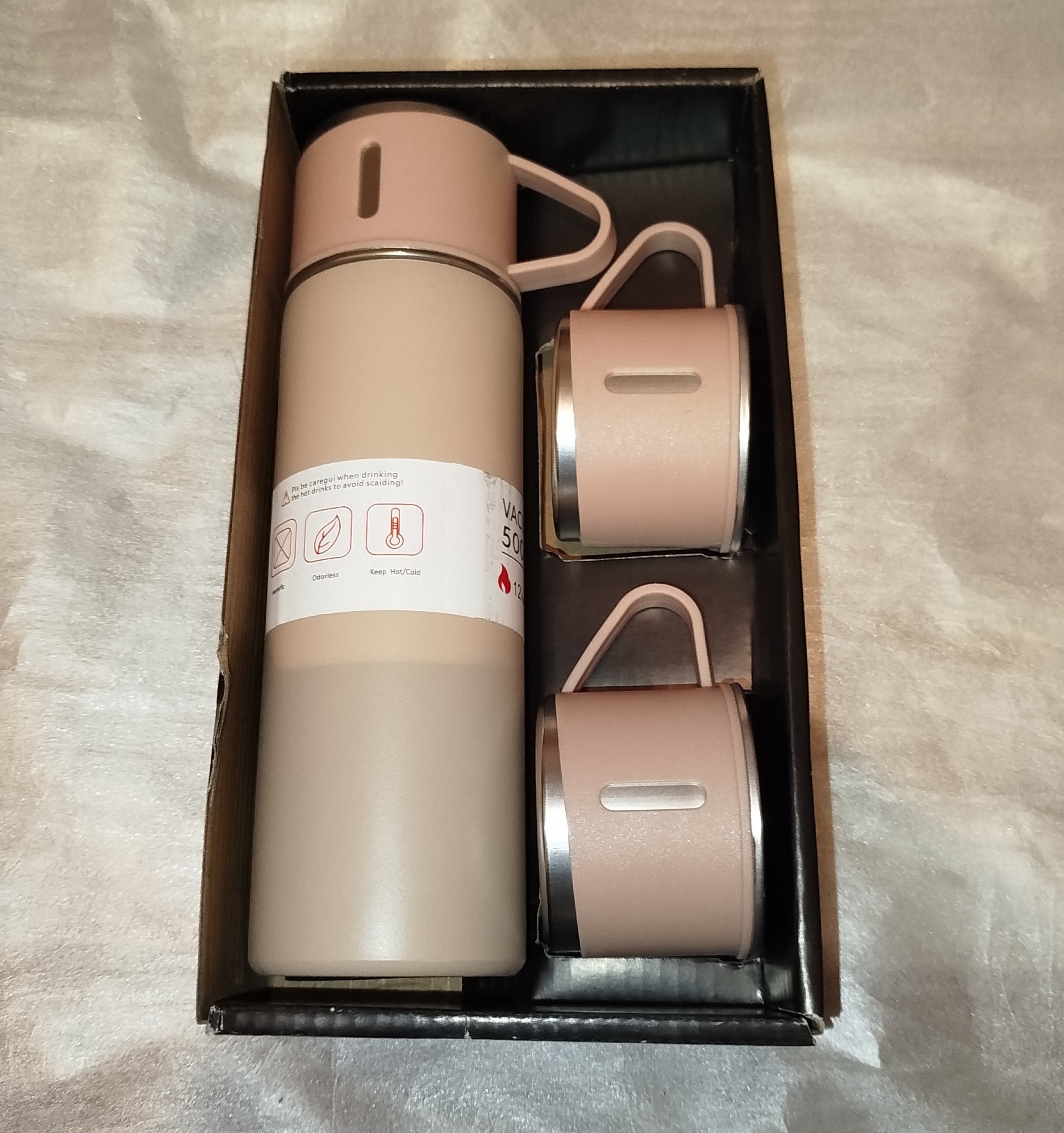 فلاسک استیل به همراه 3عدد لیوان ، کیفیت عالی نگهداری آب داغ و سرد حداقل به مدت 8ـ12 ساعت .