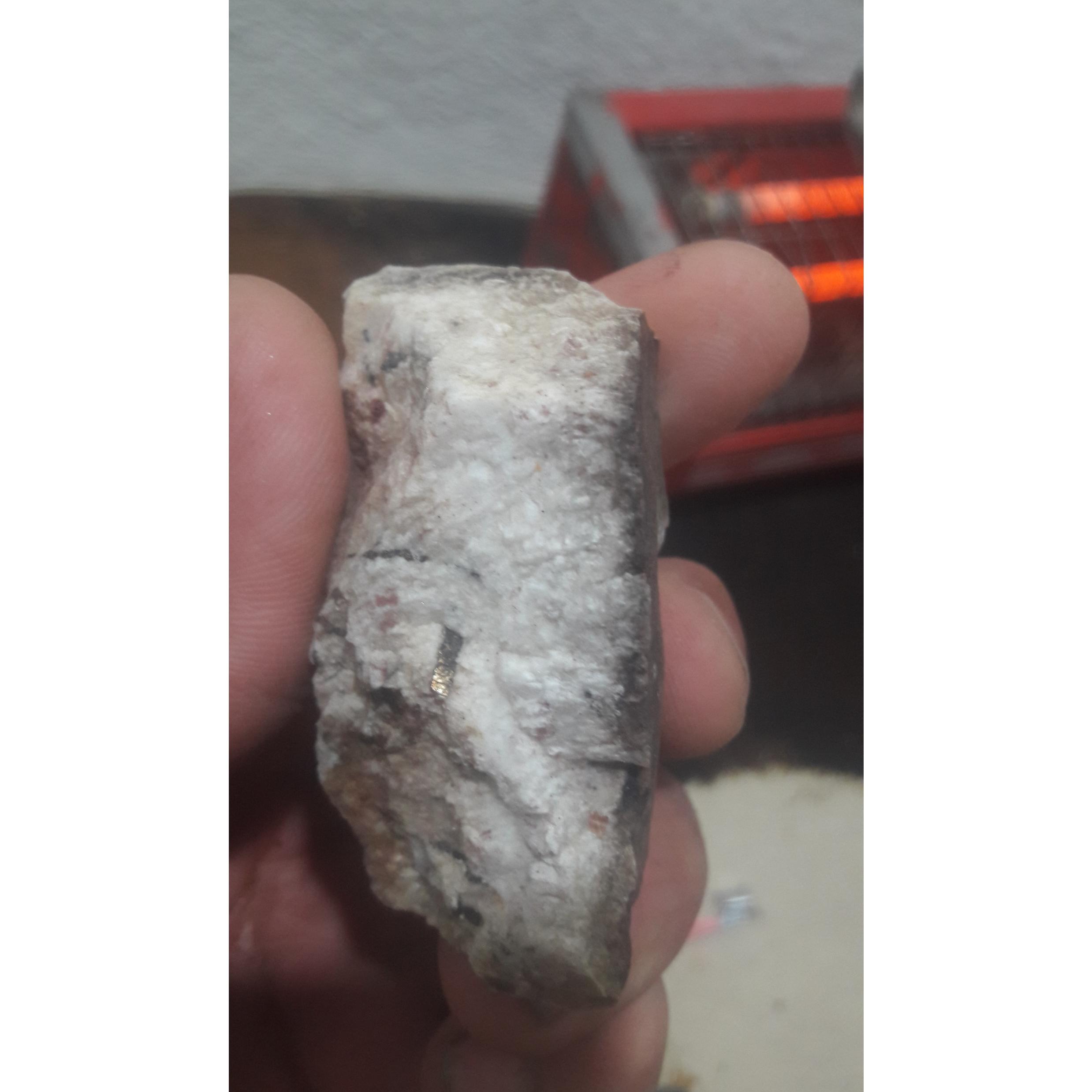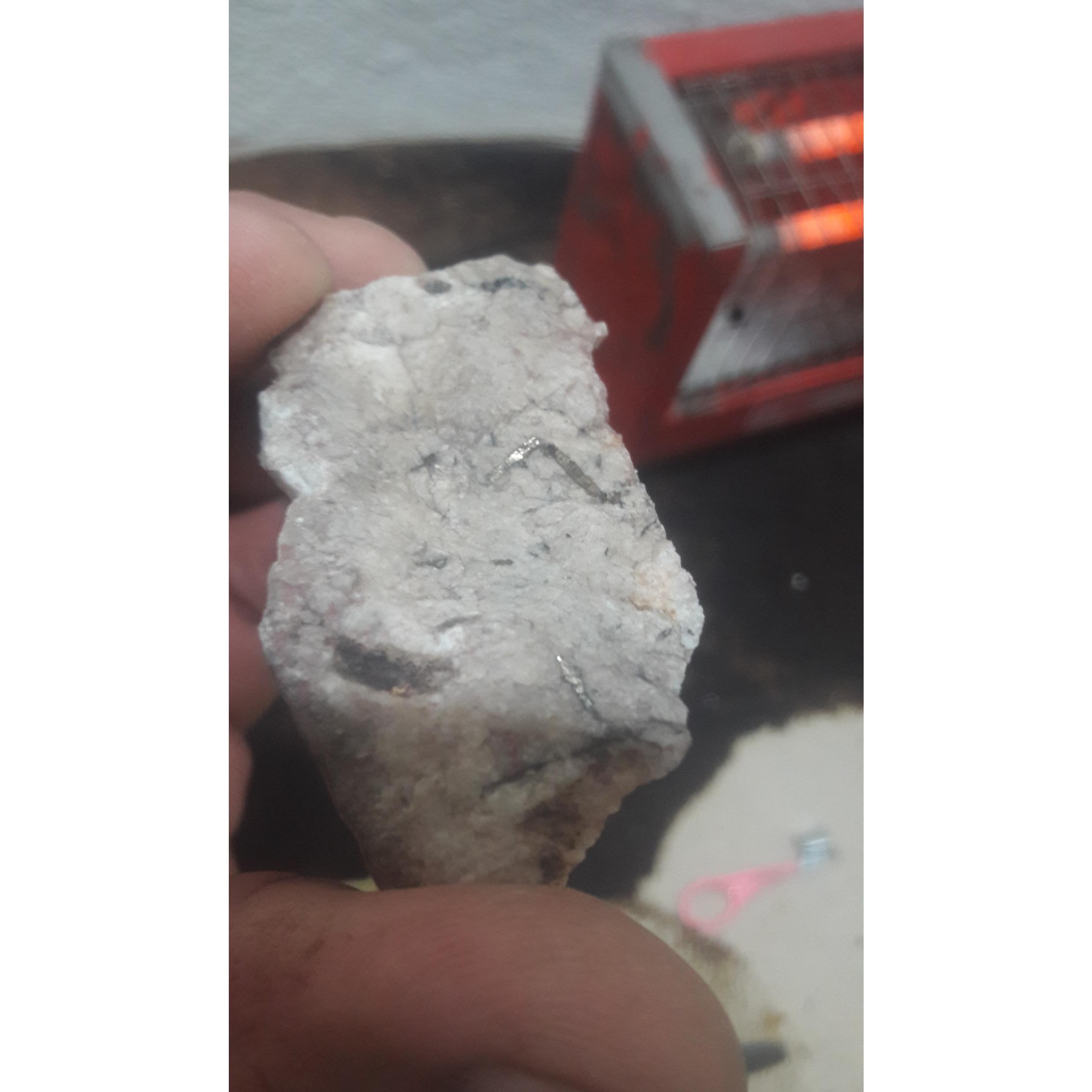 آنالیز نشده. طلایی یا فلزی به صورت خط یک سانتیمتر تمام سنگ وجود دارد .