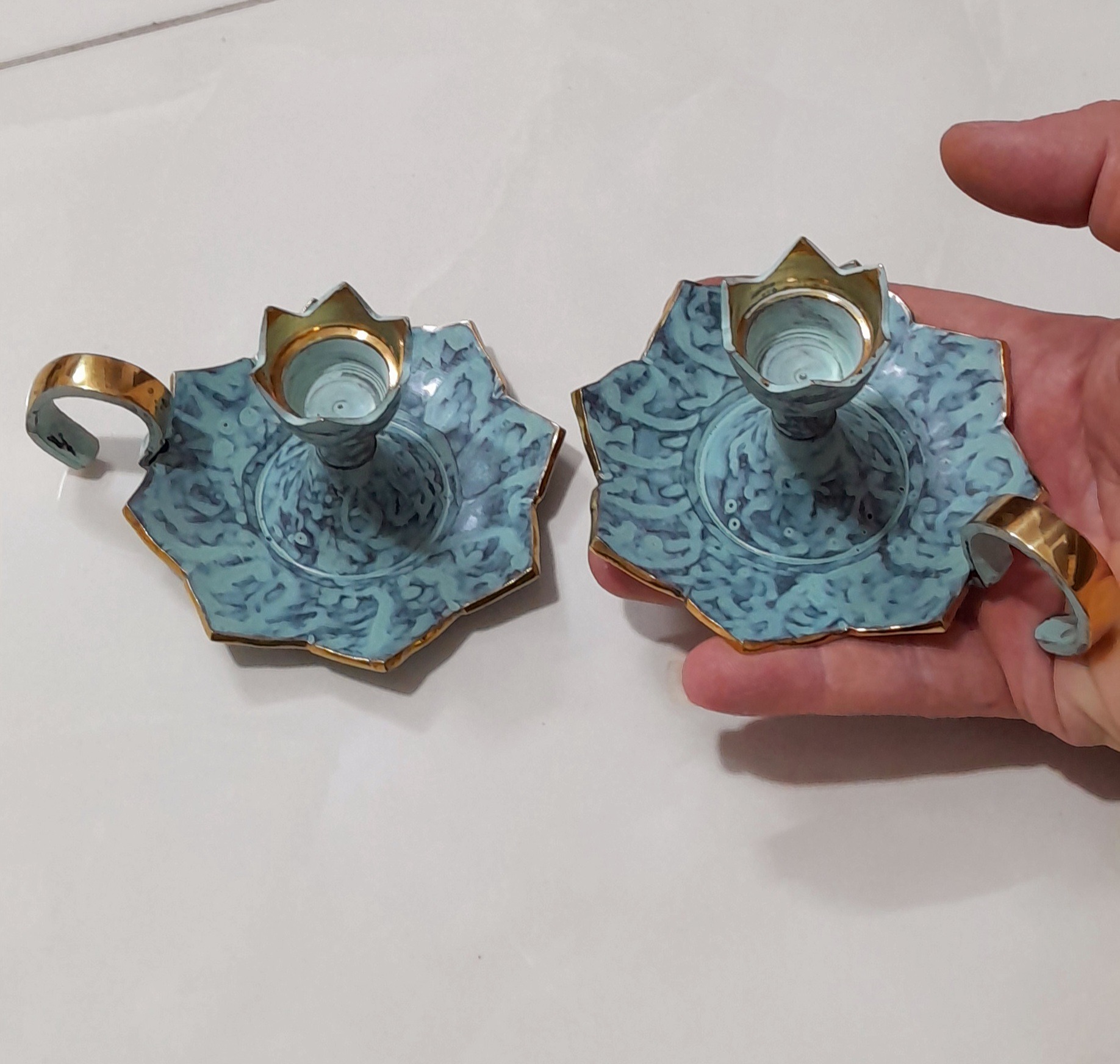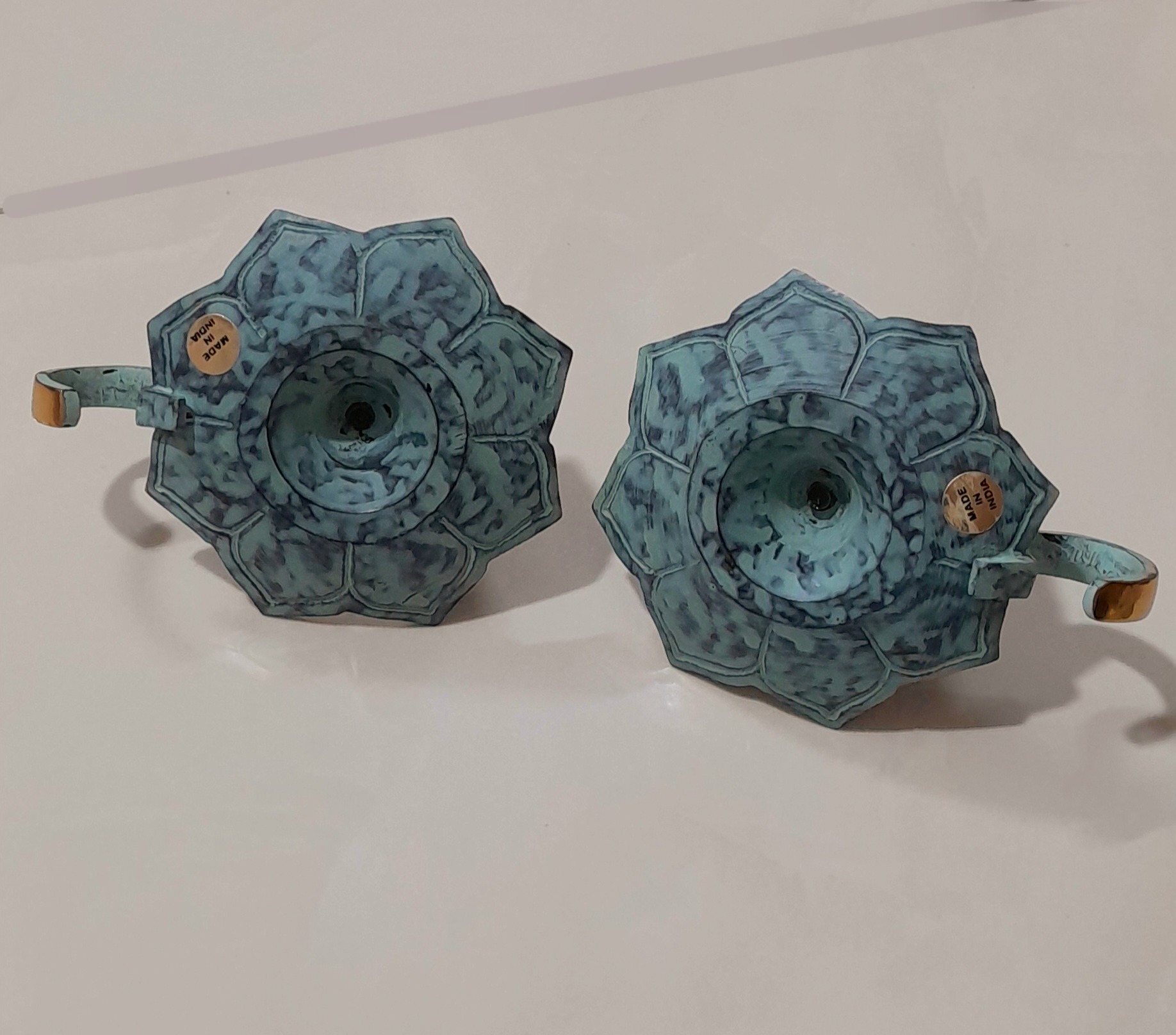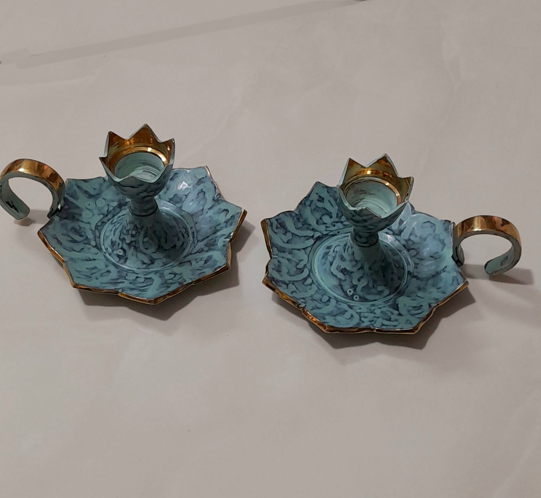 جفت جاشمعی برنجی ضخیم و سنگین آنتیک فیروزه ای باهم به قیمت فوق.