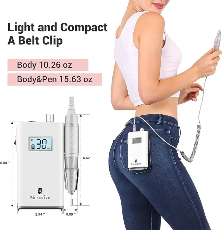 شارژی و بی سیم: با ظرفیت باتری بزرگ (6000 میلی آمپر ساعت)، می توانید از این دریل ناخن در هر مکانی و در هر زمان استفاده کنید. سوهان برقی ناخن با شارژ کامل حدود 2.5 ساعت تا 10-14 ساعت کار می کند. صفحه نمایش LCD هوشمند، دور گرانبها و برق را نمایش می دهد. گیره
