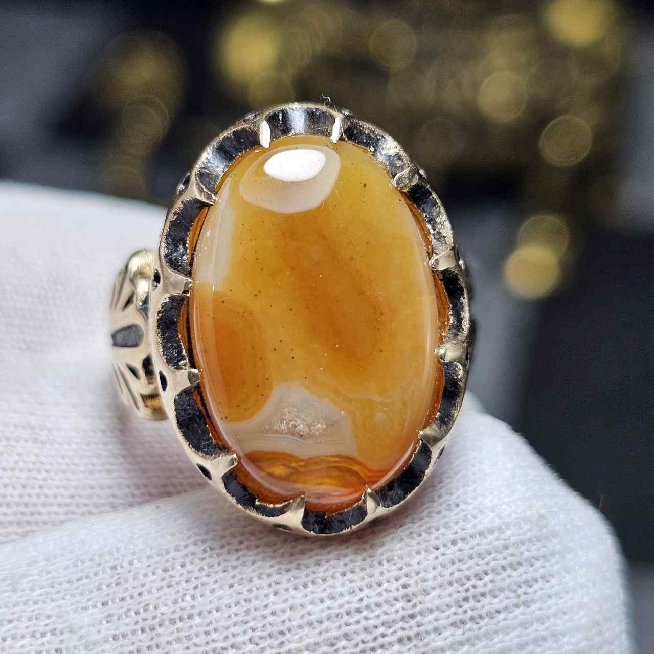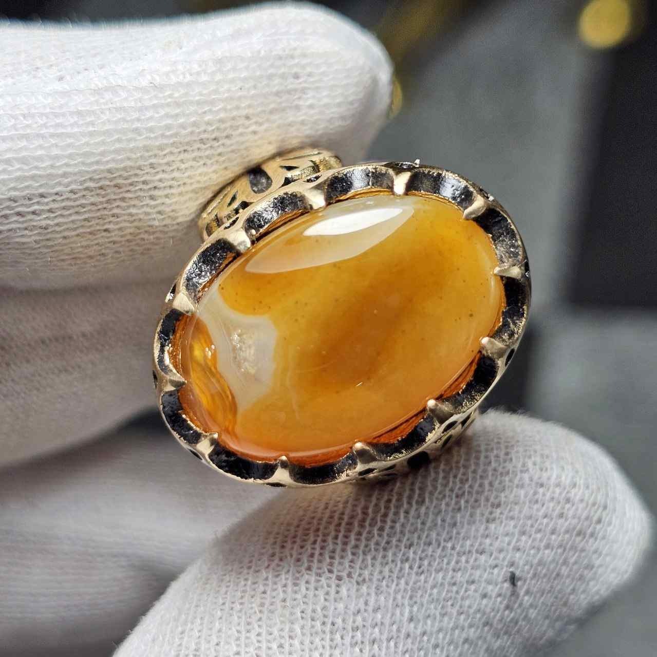 انگشتر طلا روس با سنگ عقیق جزع معدنی یمن کد 36555