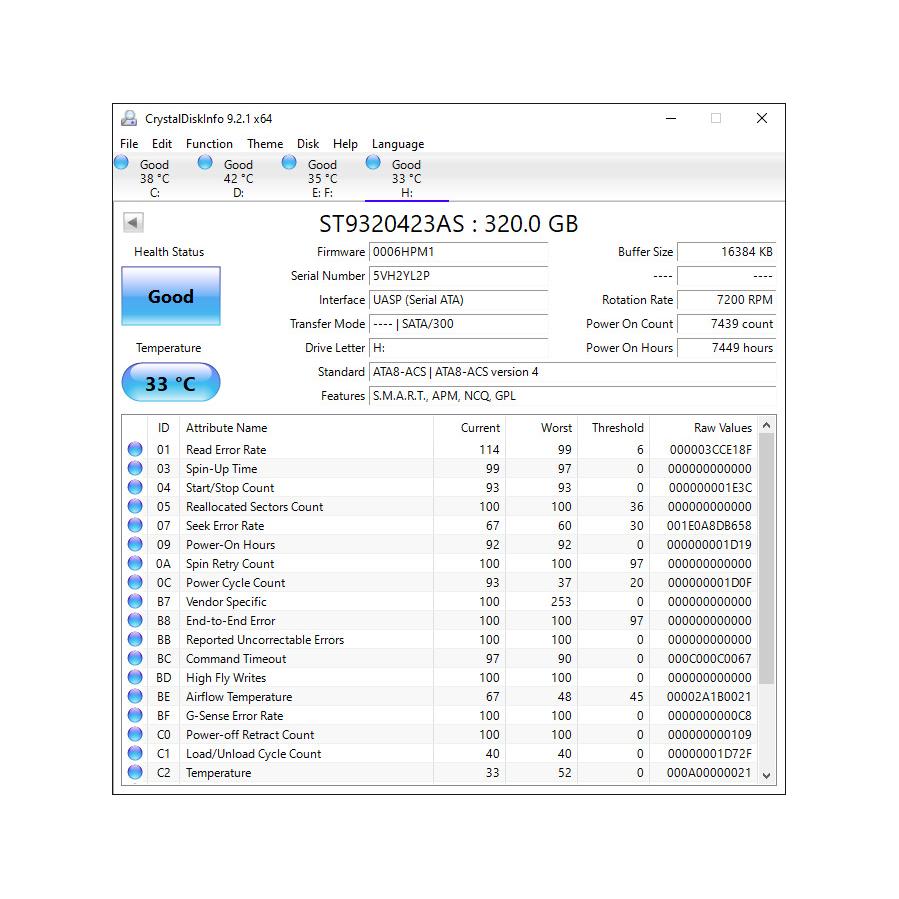 هارد لپ تاپی ساتا 320 گیگ Seagate (سلامت 100)