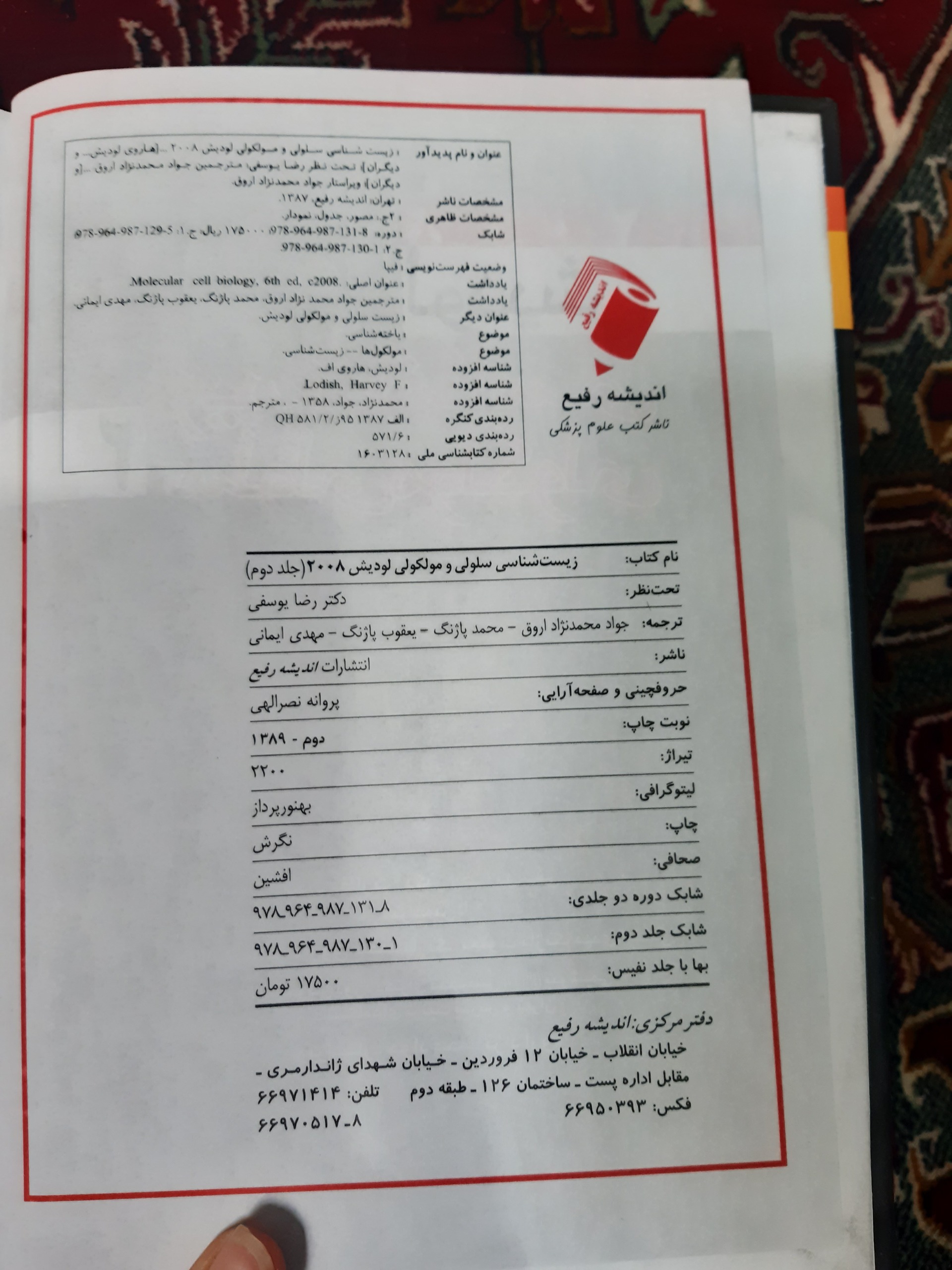 یک جلد کتاب پزشکی زیست شناسی سلولیمولکولی
