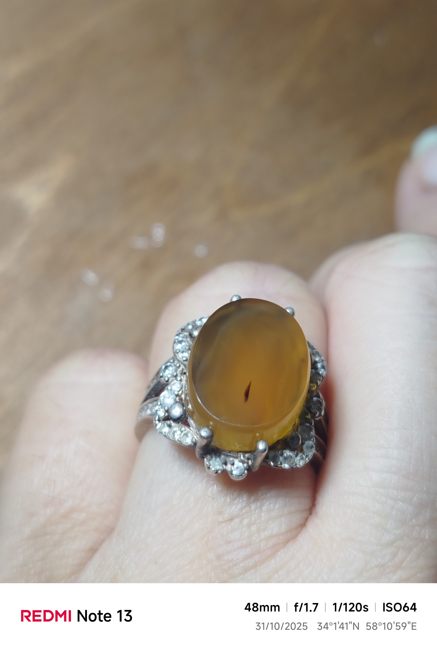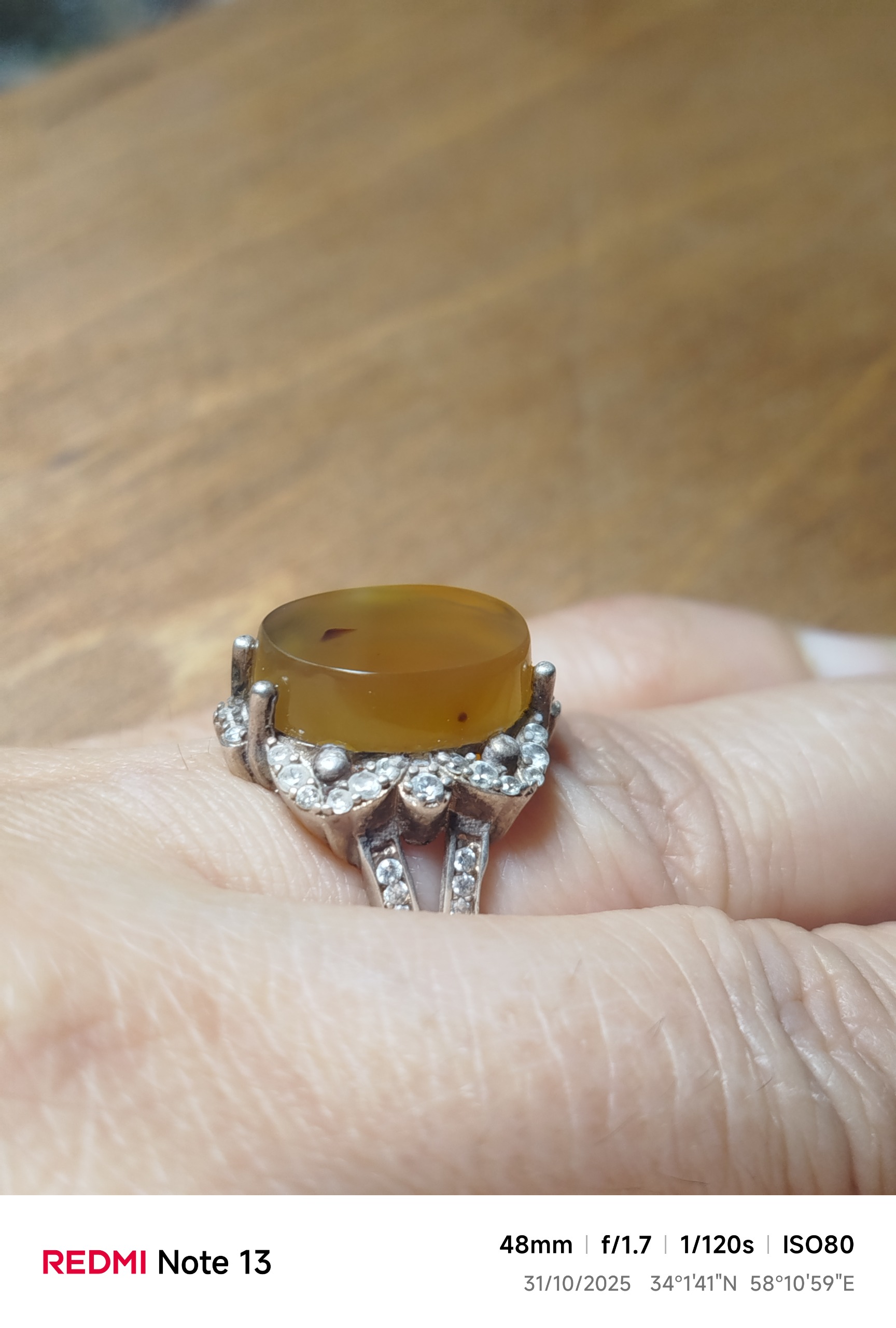 انگشتر زنانه (رکاب نقره 925) با نگین عقیق عسلی