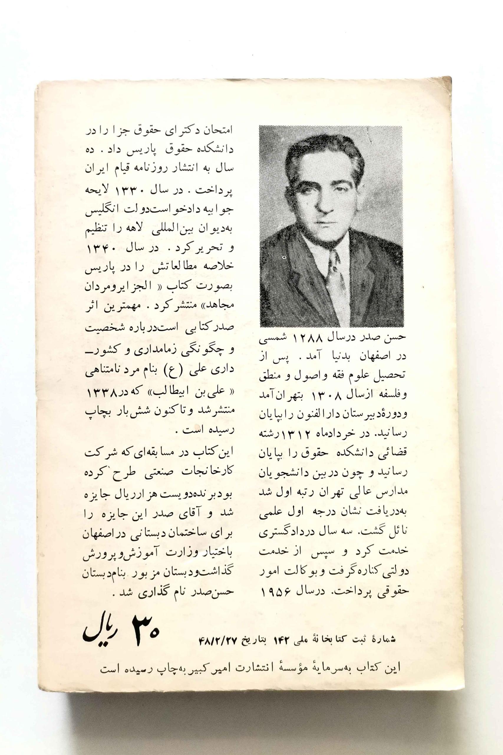 1. حقوق زن در اسلام و اروپا 2. علی مرد نامتناهی 3. الجزائر و مردان مجاهد 4. ویتنام جدید 5. دفاع دکتر مصدق از نفت در زندان زرهی6. دست چینی از مقالات صدر