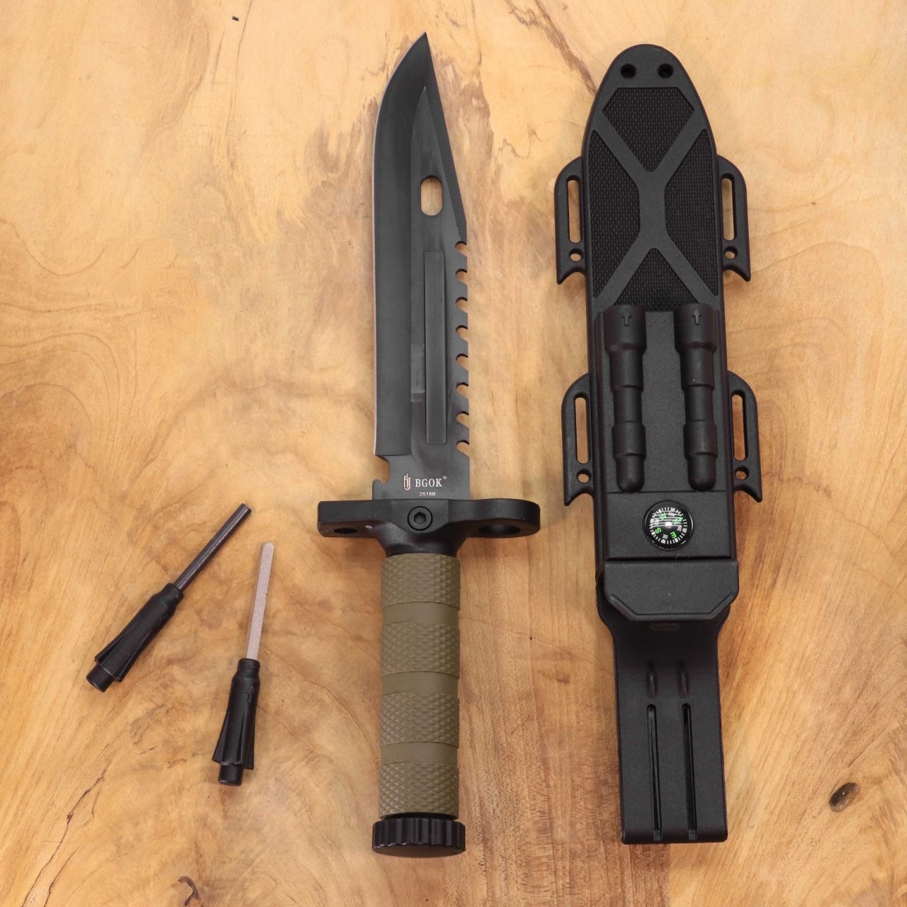 اقلام همراه:کاور(غلاف)،چخماق،مصقل(چاقو تیزکن)و قطب نما
