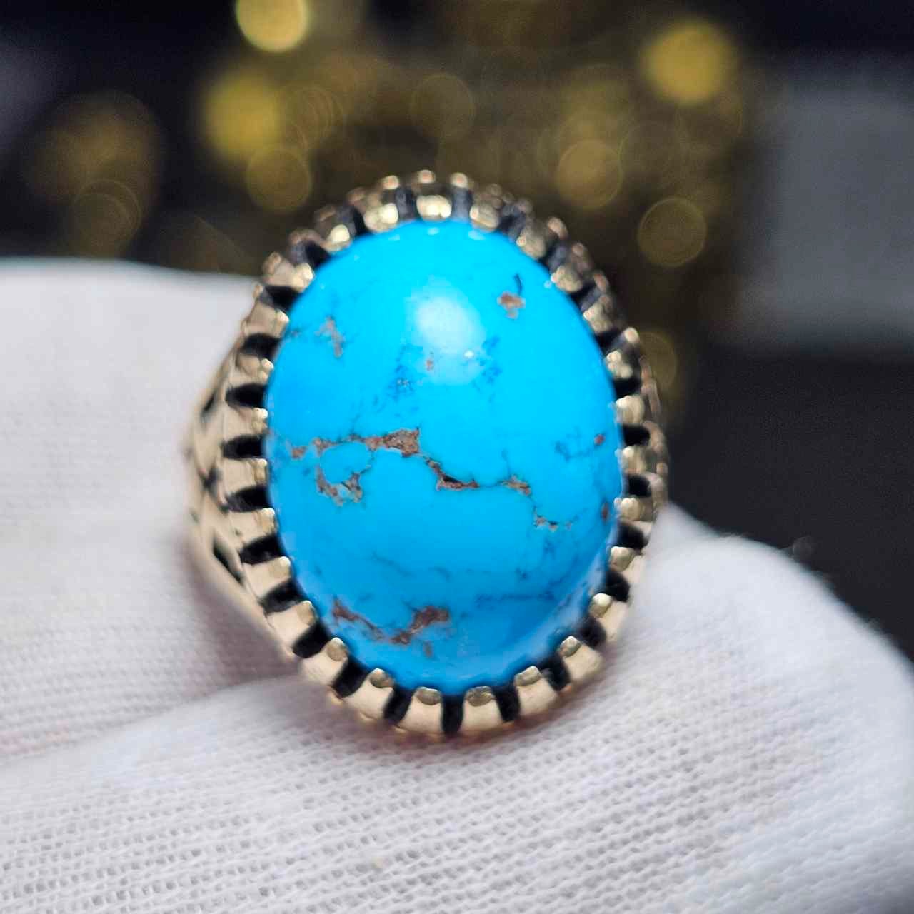 انگشتر طلاروس با سنگ فیروزه معدنی 36541