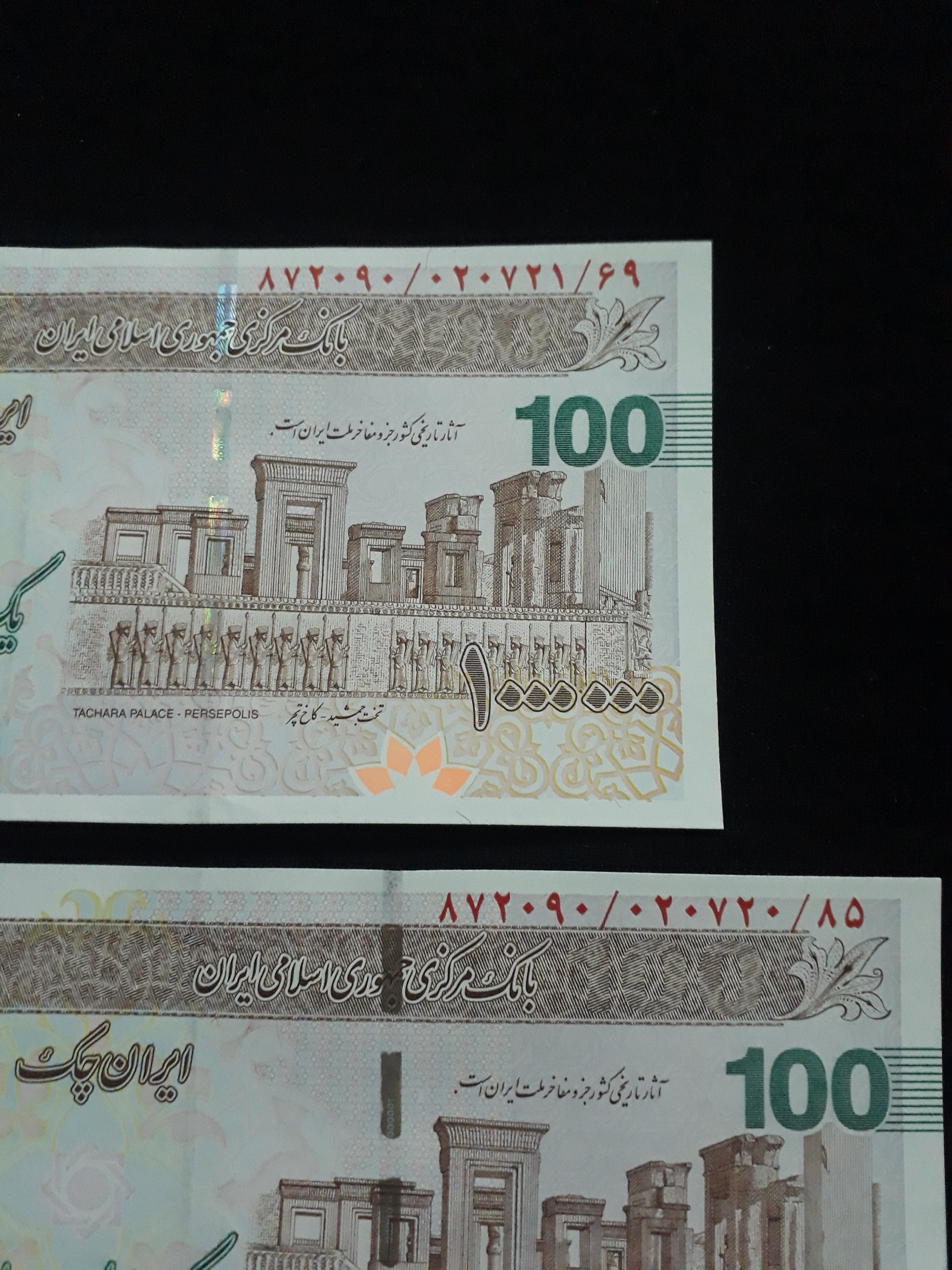 جفت اسکناس سوپر بانکی تراول 100هزاری امضا مظاهری کمیاب