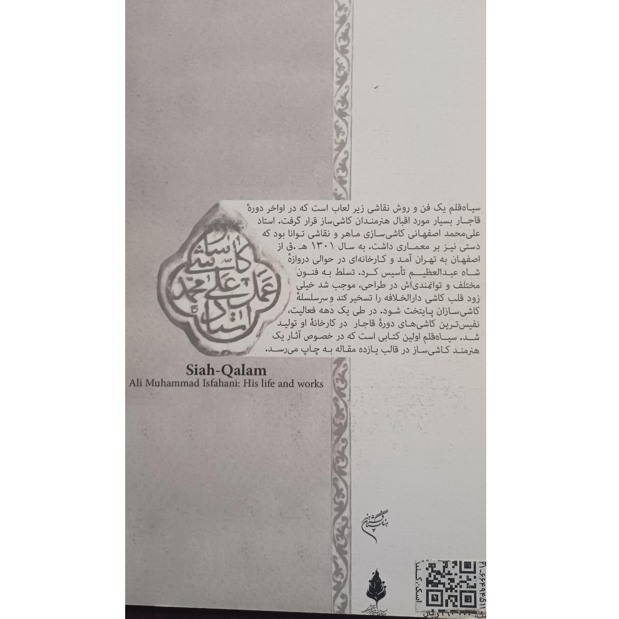 سیاه قلم یک فن و روش نقاشی زیر لعاب است که در اواخر دورۀ قاجار بسیار مورد اقبال هنرمندان کاشی ساز قرار گرفت. استاد علی محمد اصفهانی کاشی سازی ماهر و نقاشی توانا بود که دستی نیز بر معماری داشت. به سال 1301 هـ .ق از اصفهان به تهران آمد و کارخانه ای در حوالی دروازۀ شاه عبدالعظیم تأسیس کرد. تسلط به فنون مختلف و توانمندی اش در طراحی، موجب شد خیلی زود قلب کاشی دارالخلافه را تسخیر کند و سر سلسلۀ کاشی سازان پایتخت شود. در طی یک دهه فعالیت، نفیس ترین کاشی های دورۀ قاجار در کارخانۀ او تولید شد. سیاه قلم اولین کتابی است که در خصوص آثار یک هنرمند کاشی ساز در قالب یازده مقاله به چاپ رسیده است.