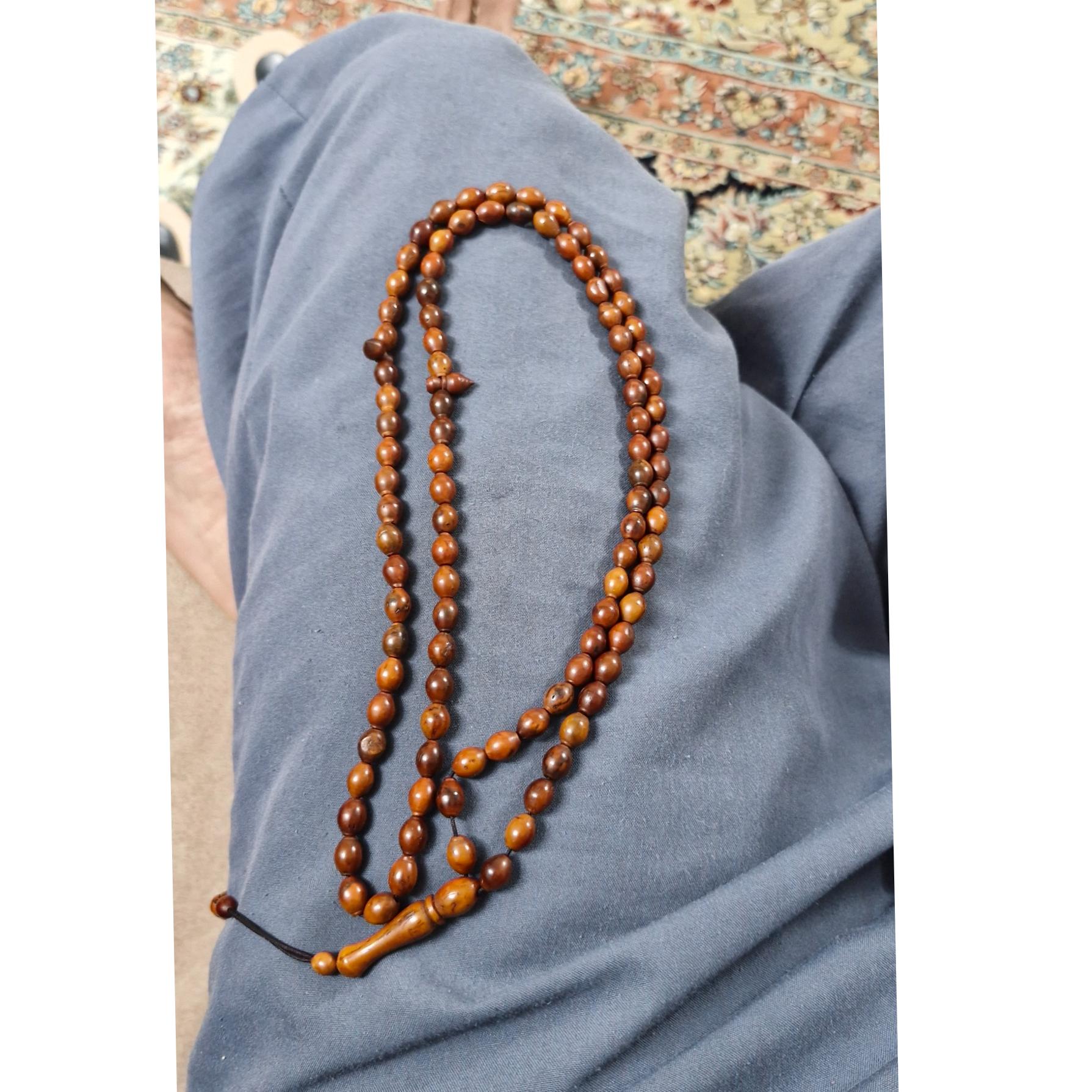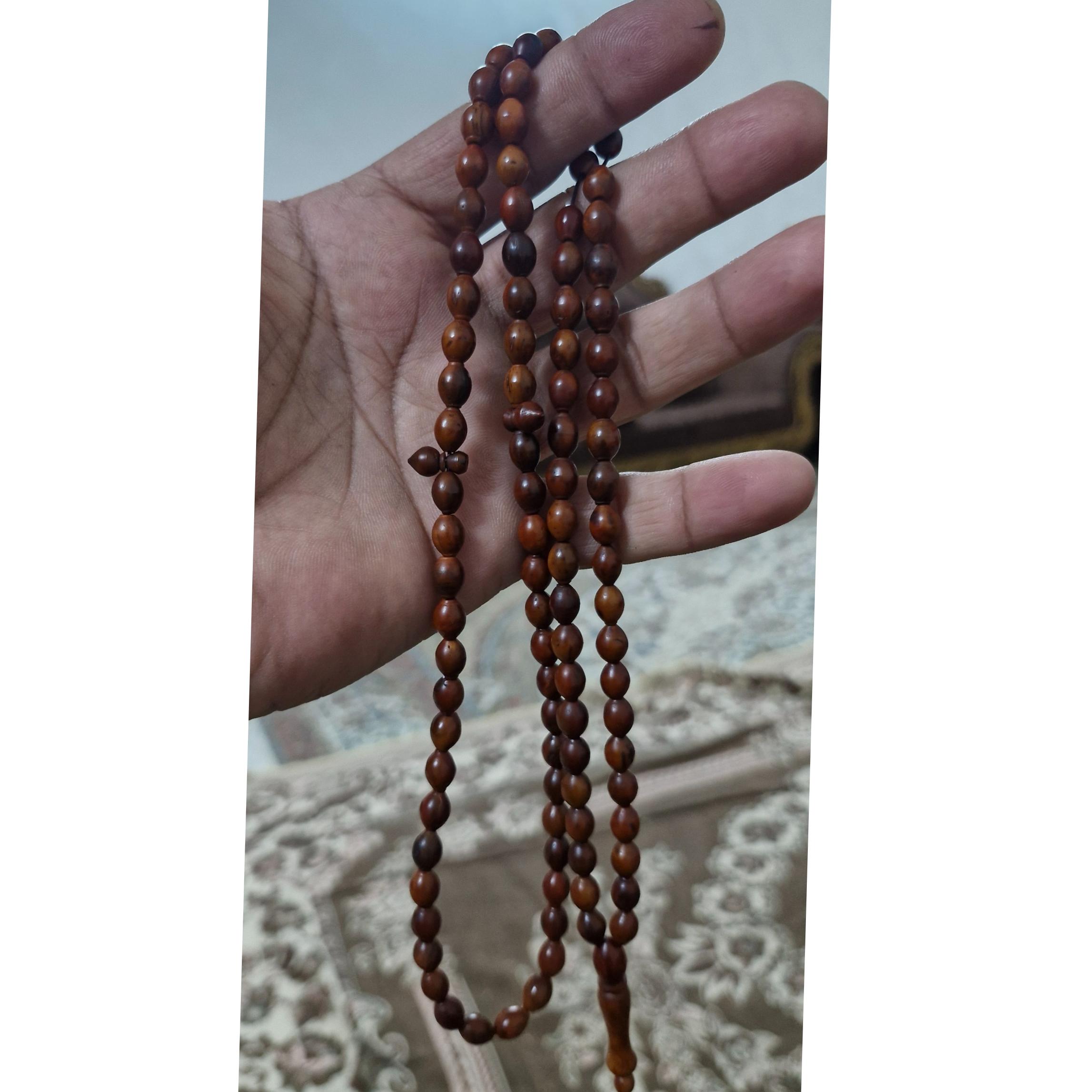 تسبیح کشکول صدویک دانه آفریقایی تراش دست تهیه شده از پوست بادام آفریقایی قد55 سانت