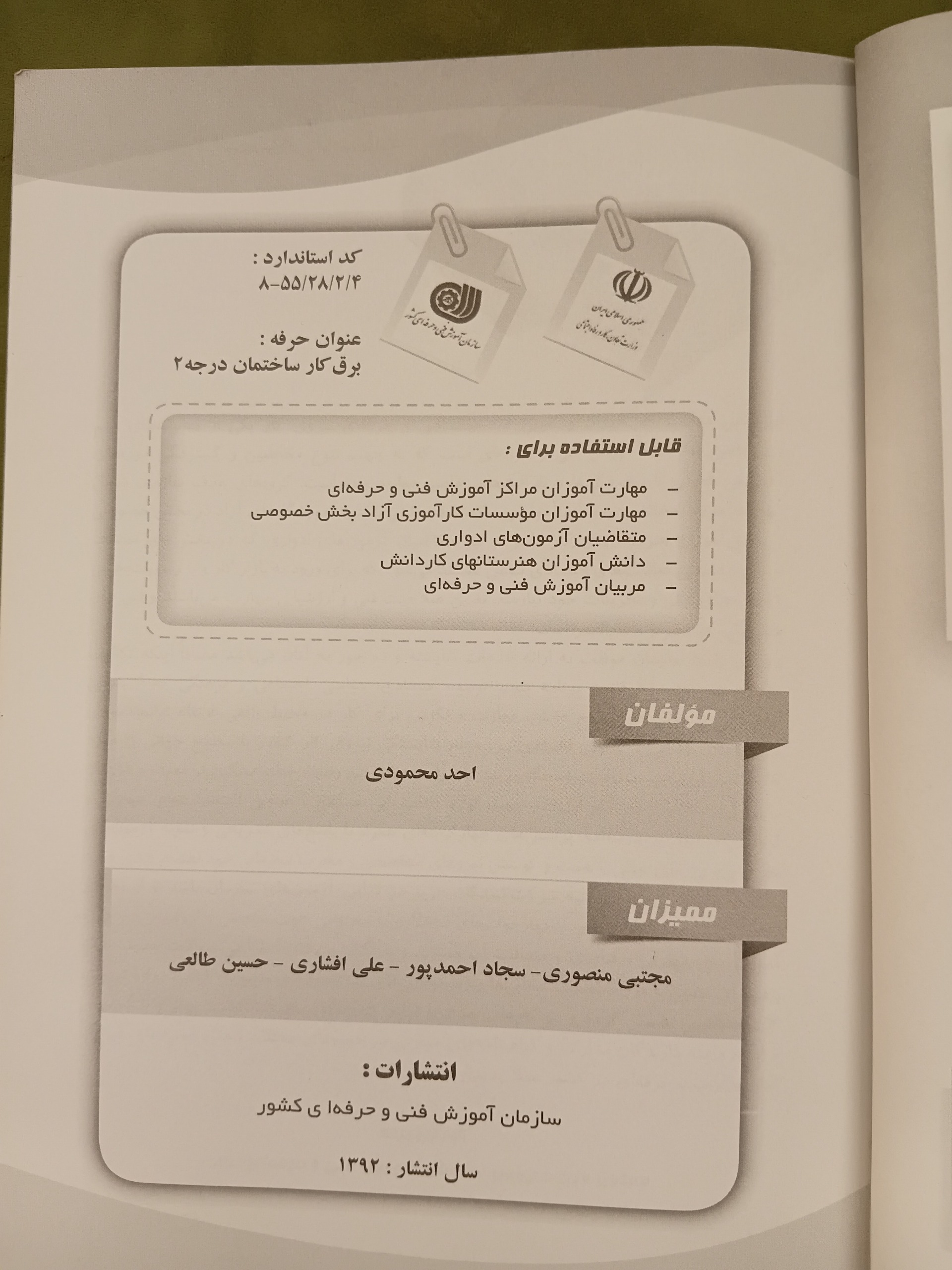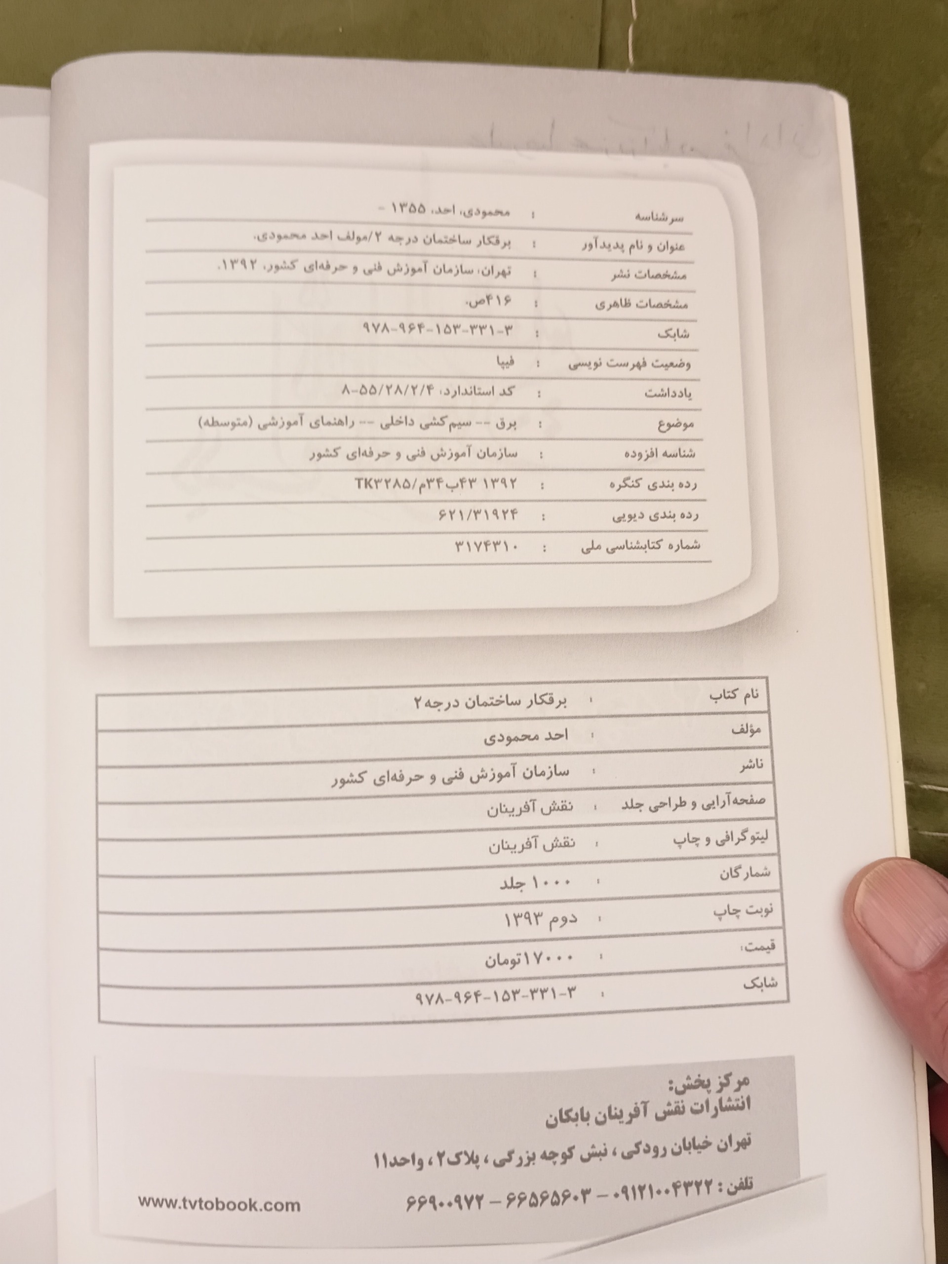یکجلد کتاب آموزش برقکاری ساختمان درجه 2
