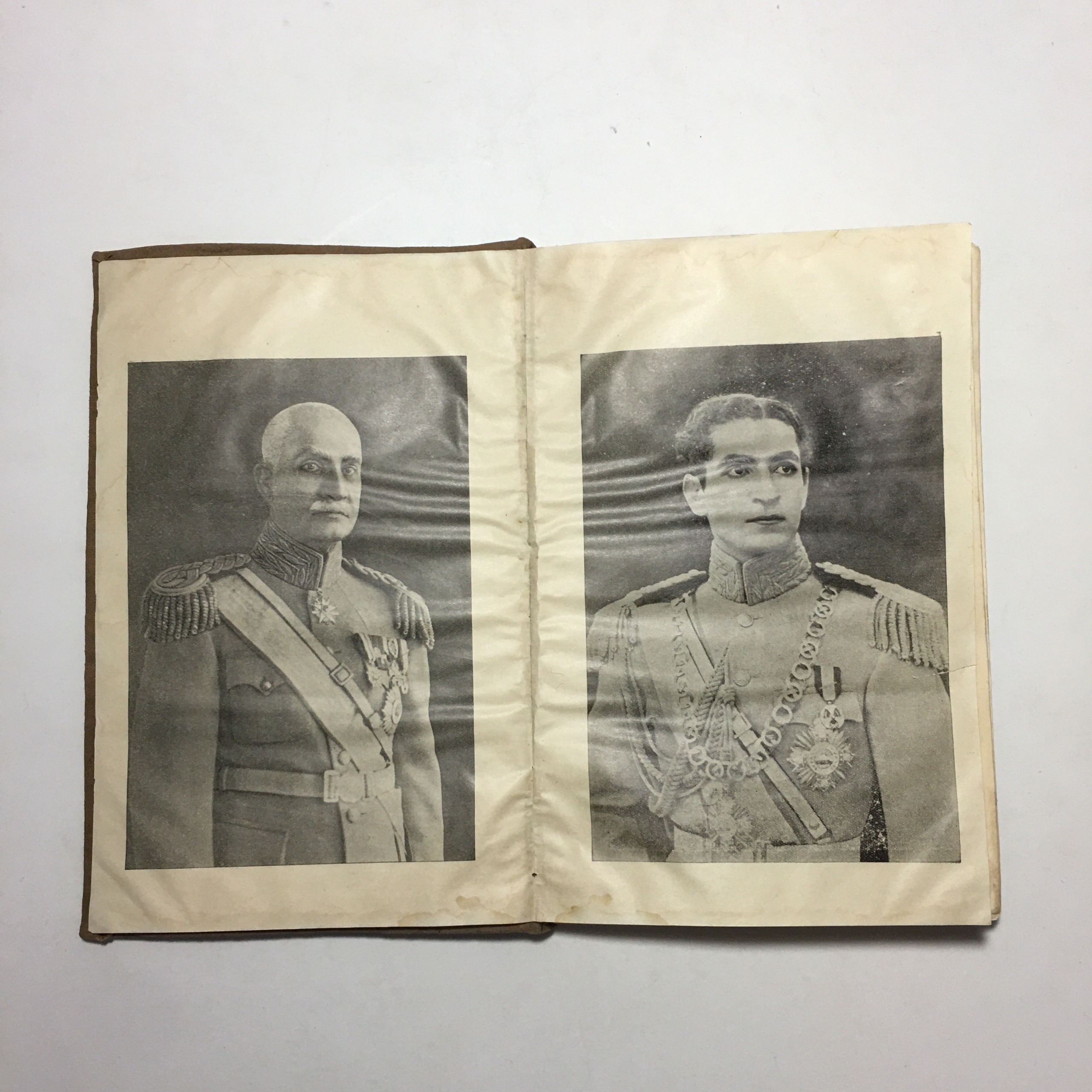 درون کتاب، عکسهای رضا شاه، محمدرضا پهلوی و همچنین پرچم شیر و خورشید ایران دیده میشود که جلوه ای تاریخی و کلکسیونی به آن بخشیده است.