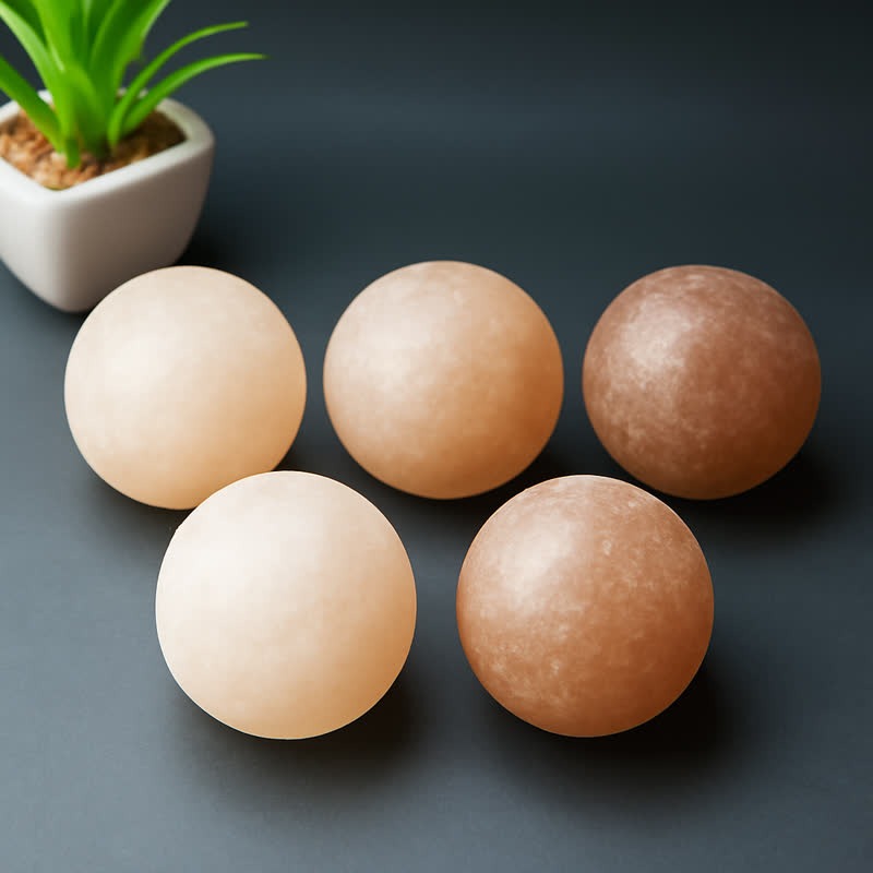 این گوی از سنگ نمک معدنی 100٪ طبیعی ساخته شده و رنگ گرم صورتی تا نارنجی آن، نتیجه حضور عناصر معدنی همچون سدیم، پتاسیم، منیزیم و آهن است. هنگامی که در محیط قرار میگیرد (بهویژه در کنار منبع حرارتی مثل شمع یا چراغ)، ذرات منفی هوا را جذب و به یونهای مثبت تبدیل میکند؛ در نتیجه باعث تصفیه هوا و ایجاد حس تنفس سبکتر میشود.