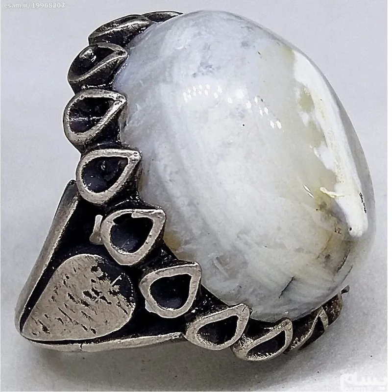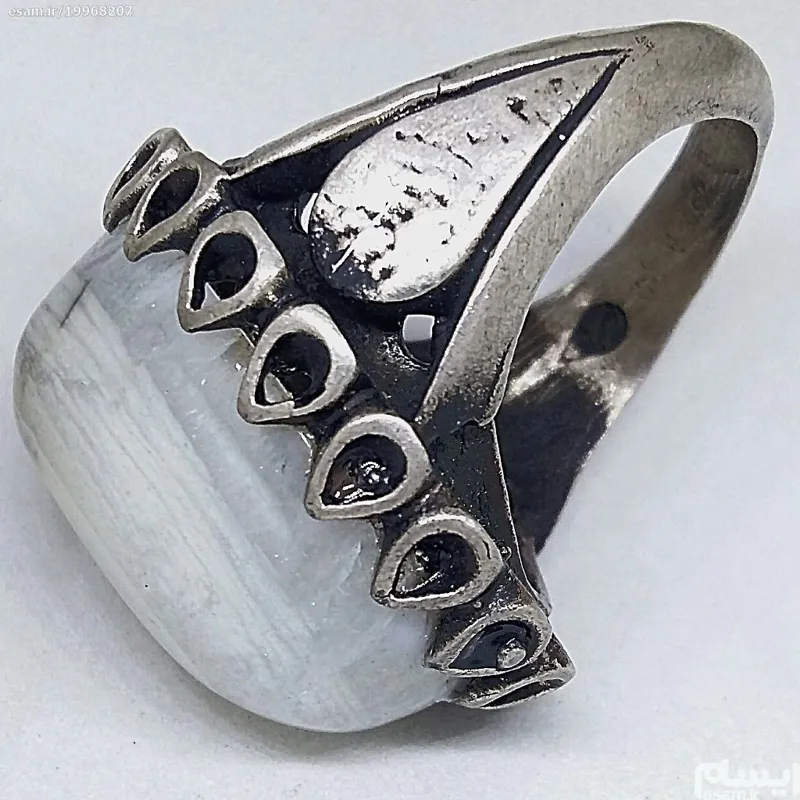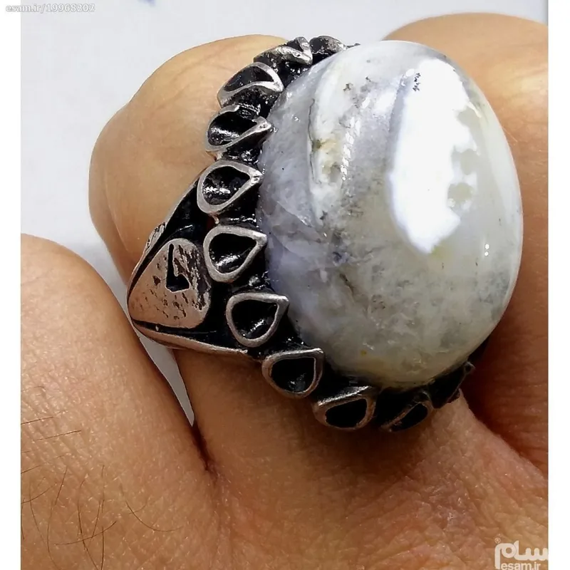 انگشتر اشکی سنگین جزع برفی فانتزی