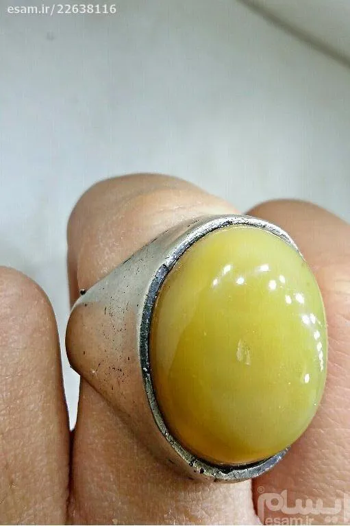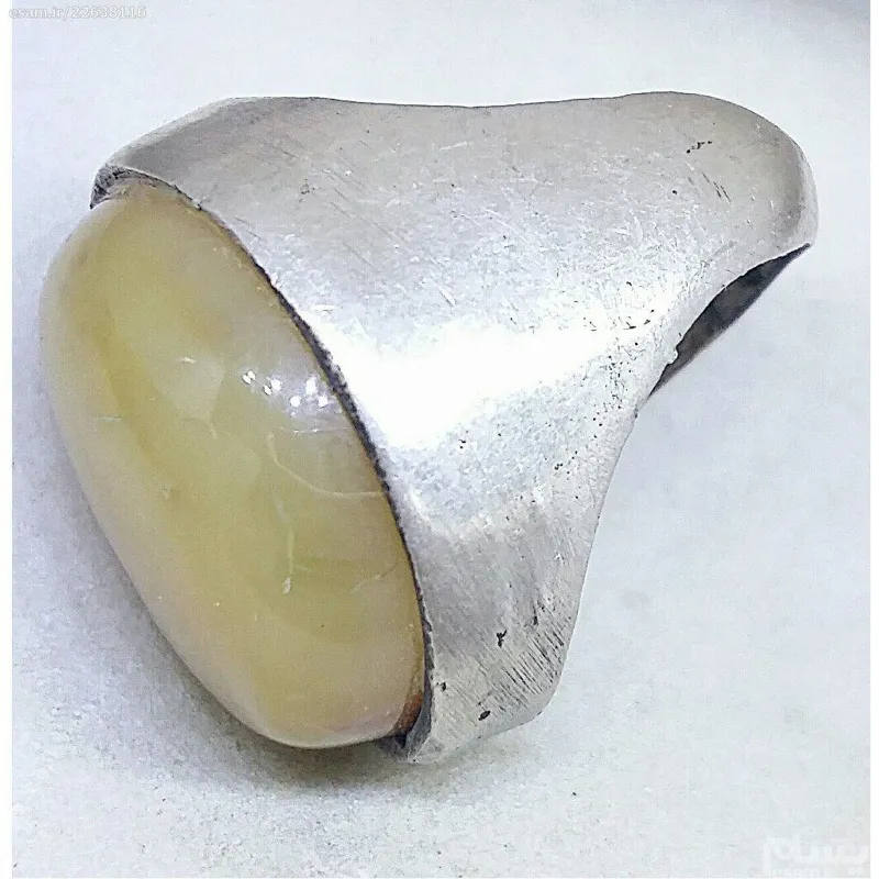 عقیق زرد خردلی خوشرنگ با طیف رنگی کمیاب , کاملا معدنی با تراش دامله بزرگ/رکاب فیلی کلاسیک عیارمتوسط