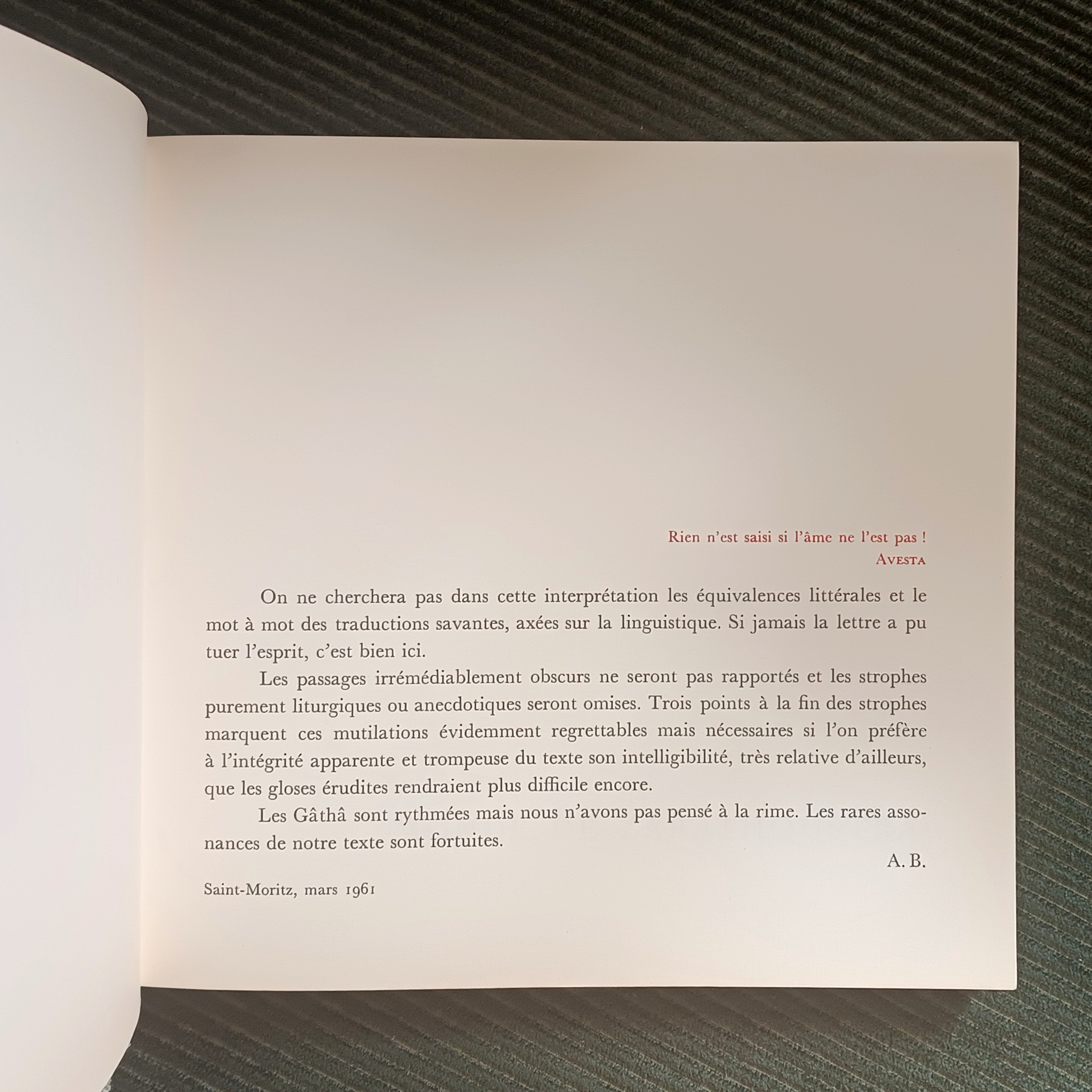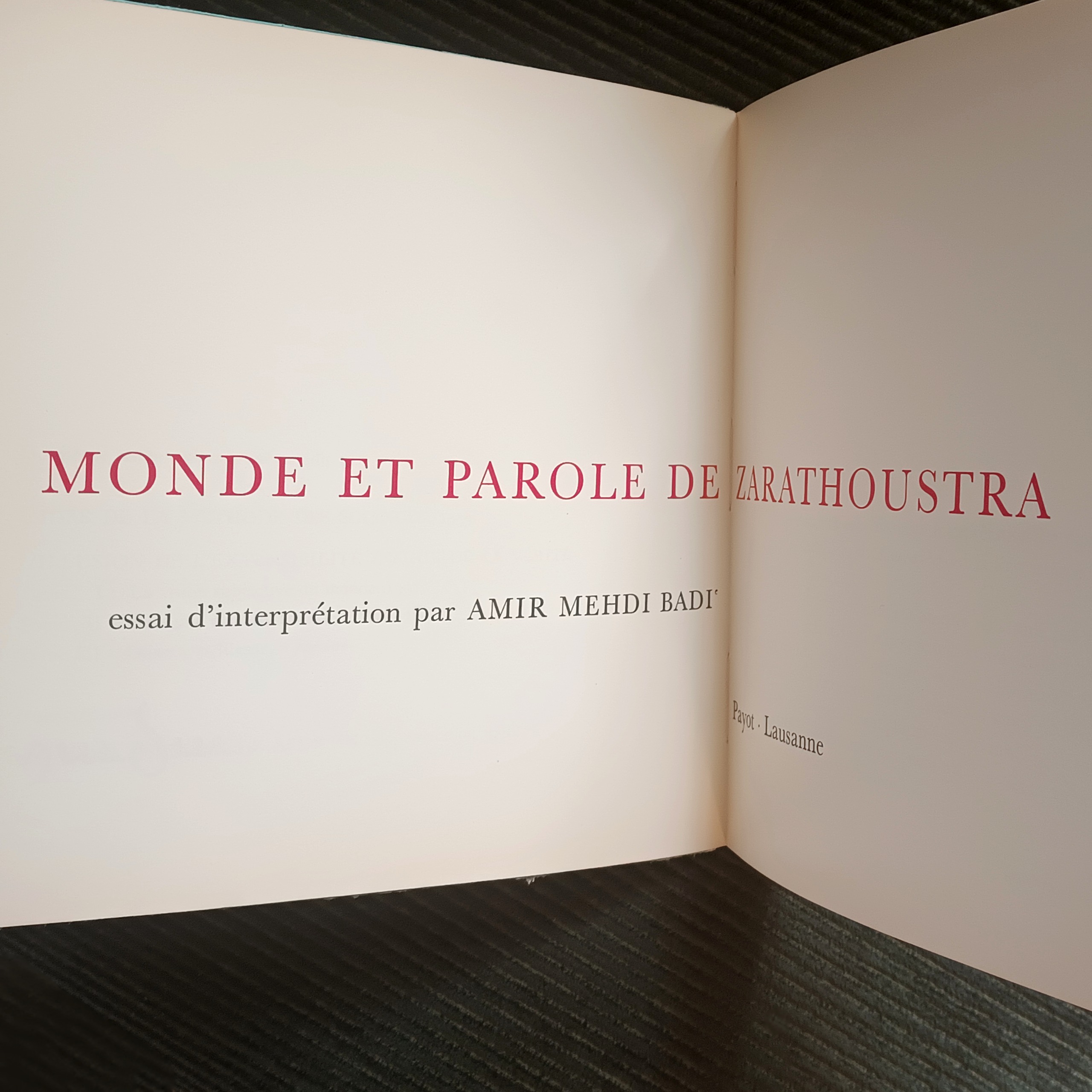 کتاب حاوی یک جستار تفسیری از امیرمهدی بدیع و گزیده هایی از گفتار زرتشت به فرانسوی است.