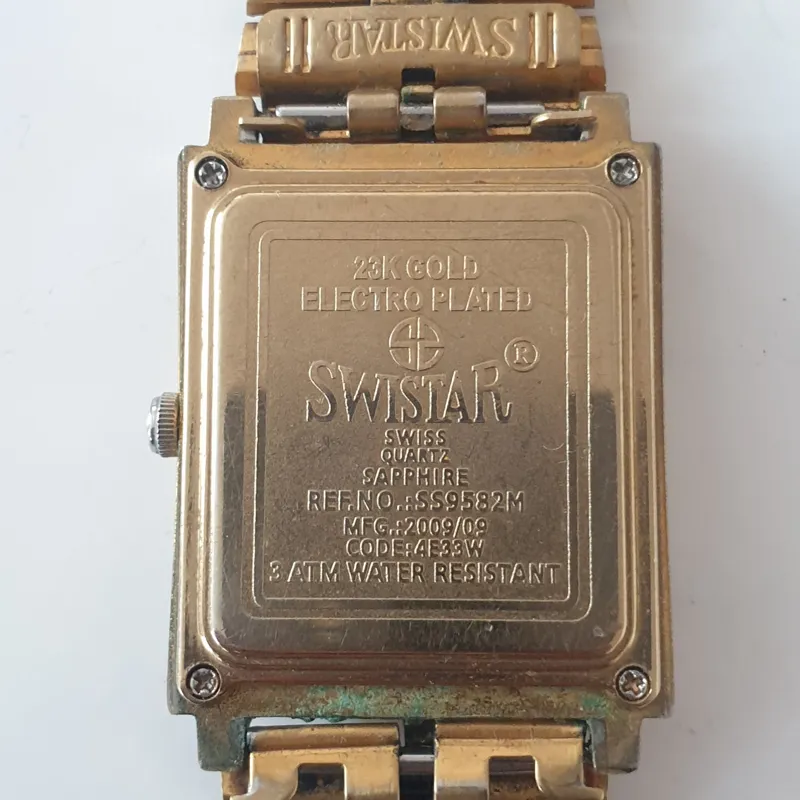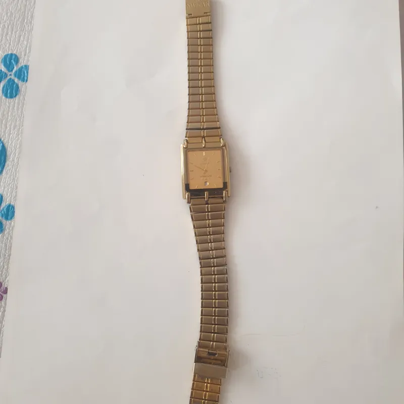 تمیر طلایی طلای 24 عیار کوت شده تازه باتریش را عوض کردم 200 تومن باتری ژاپنی انداختم ساعت ظاهر تمیز و کم کار بوده استفاده زیاد نشده