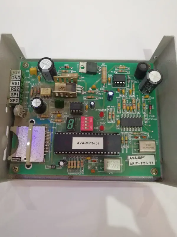 دستگاه پخش موزیک و اعلام طبقات تابلو فرمان آریان. مربوط به تابلوهای سری قدیم آسانسور. دست دوم. بهمراه رم حاوی موزیک و صدا