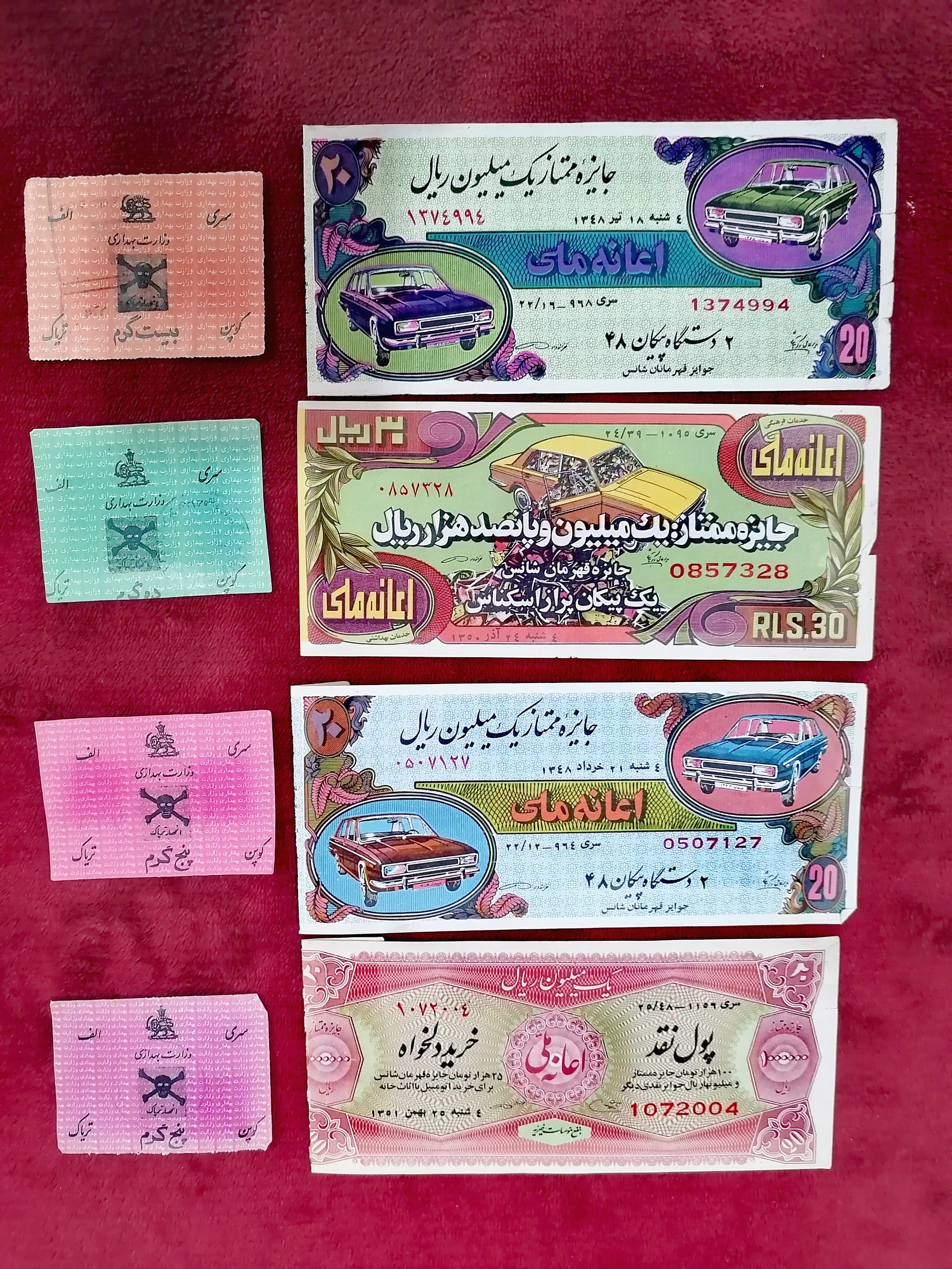 سلام تعداد 170 عدد بلیط، کوپن و اوراق قدیمی مربوط به دوره پهلوی و جمهوری اسلامی که اکثرا نو واستفاده نشده و تعداد هم به صورت شیت به شرح زیر